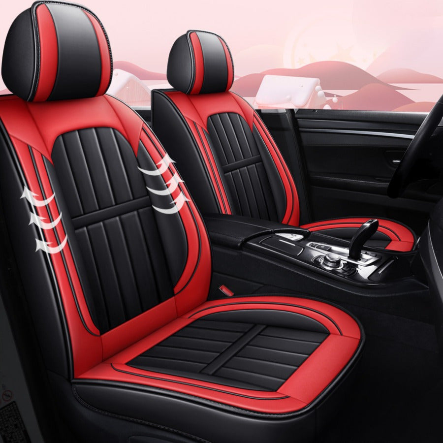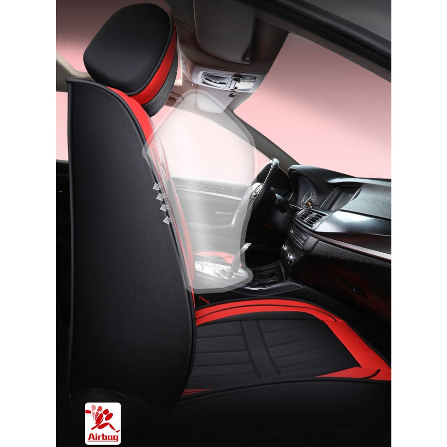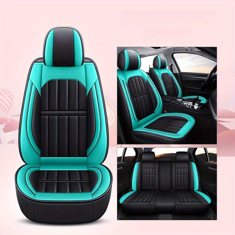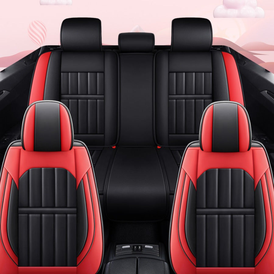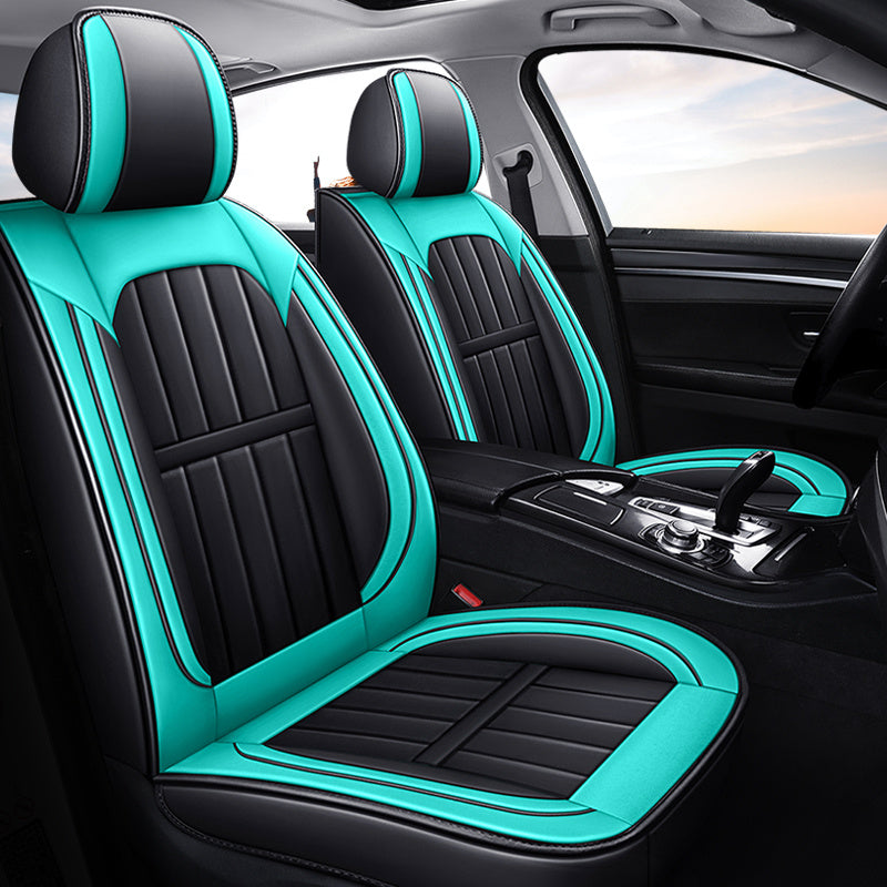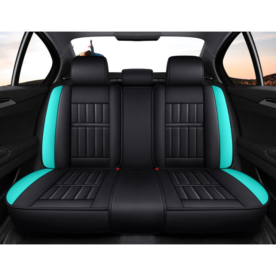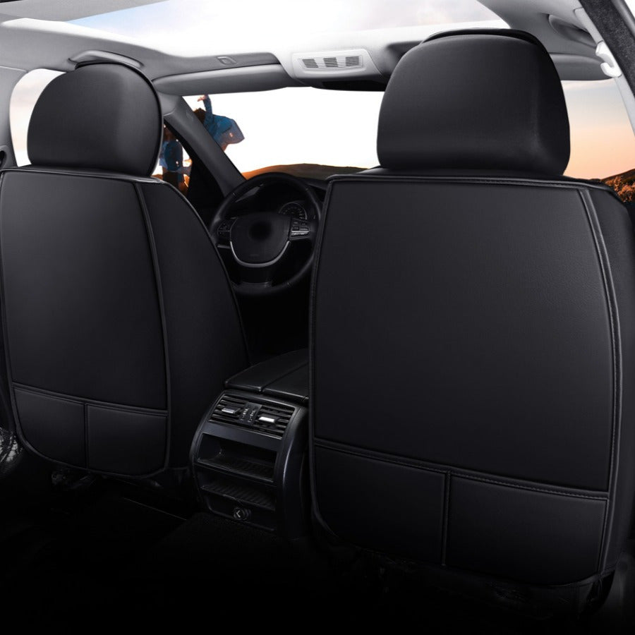 5 o'rindiqli EV avtomobil uchun qora faux charm qo'shimchalari bilan o'rindiq qoplamalari