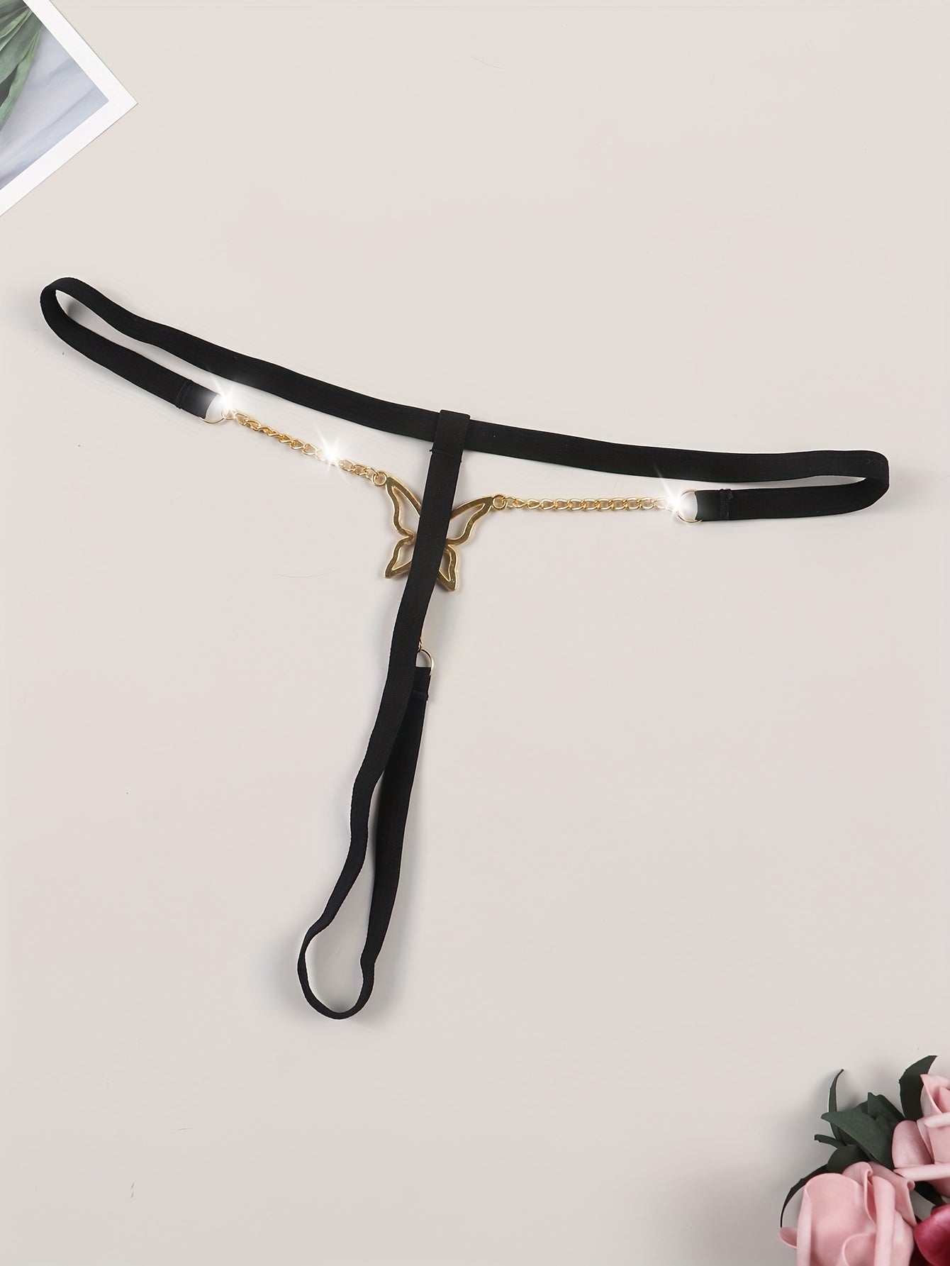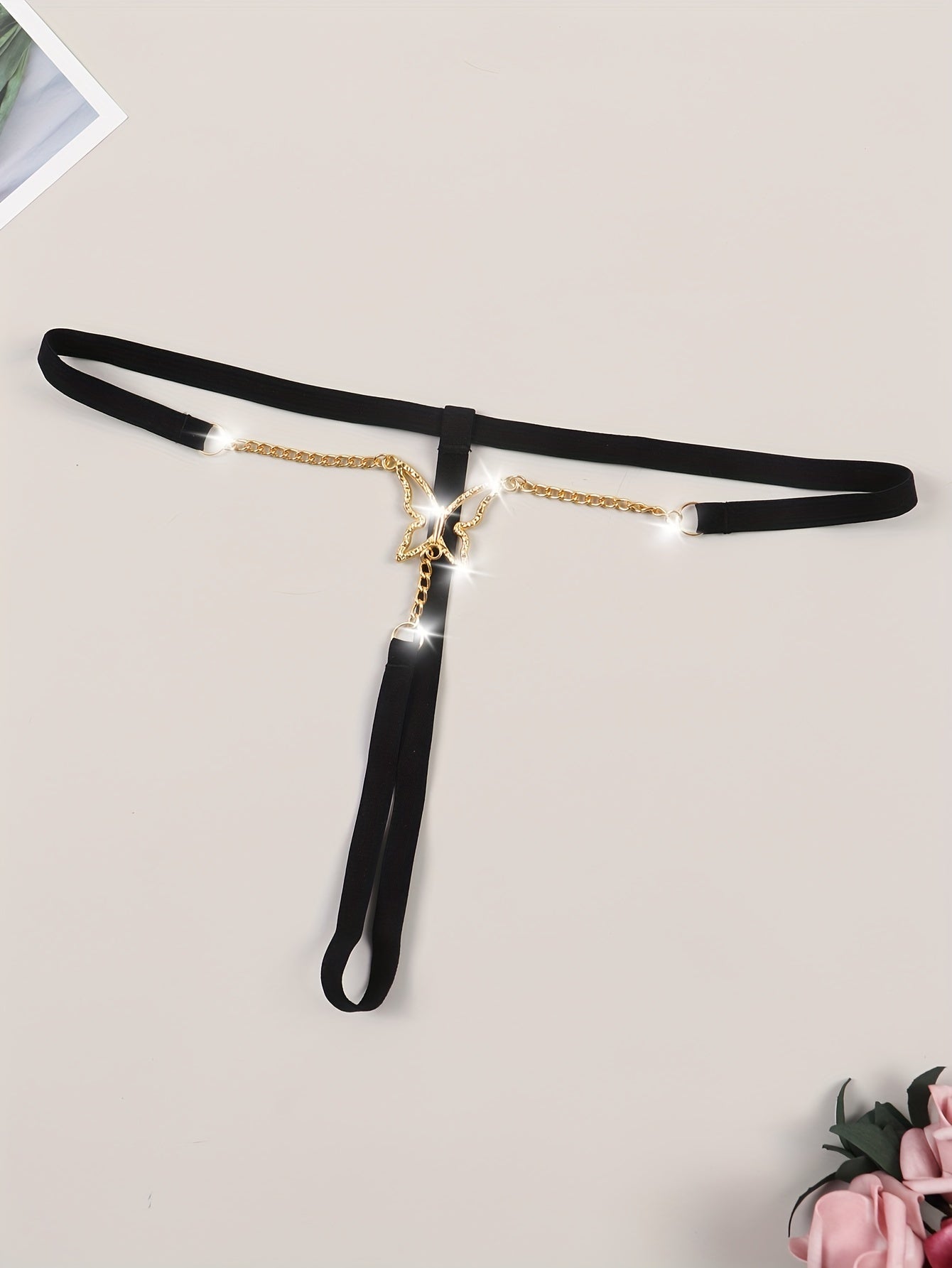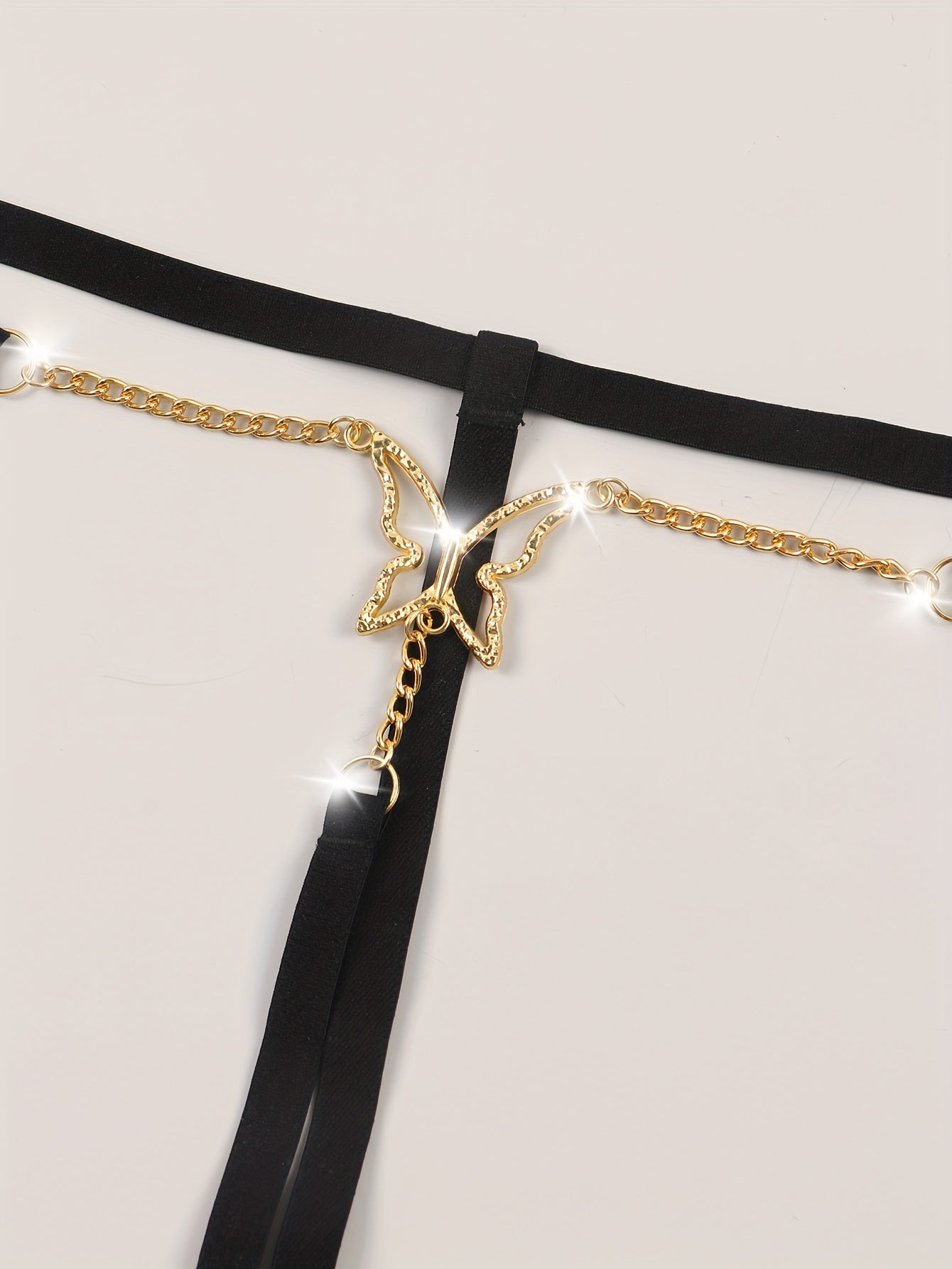 Koʻk rangli jins uslubidagi ichki kiyimlar, sharf bilan va oltin zanjir detallari bilan, naylon elastan, qoʻlda yuvish