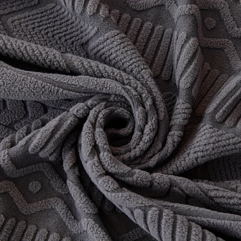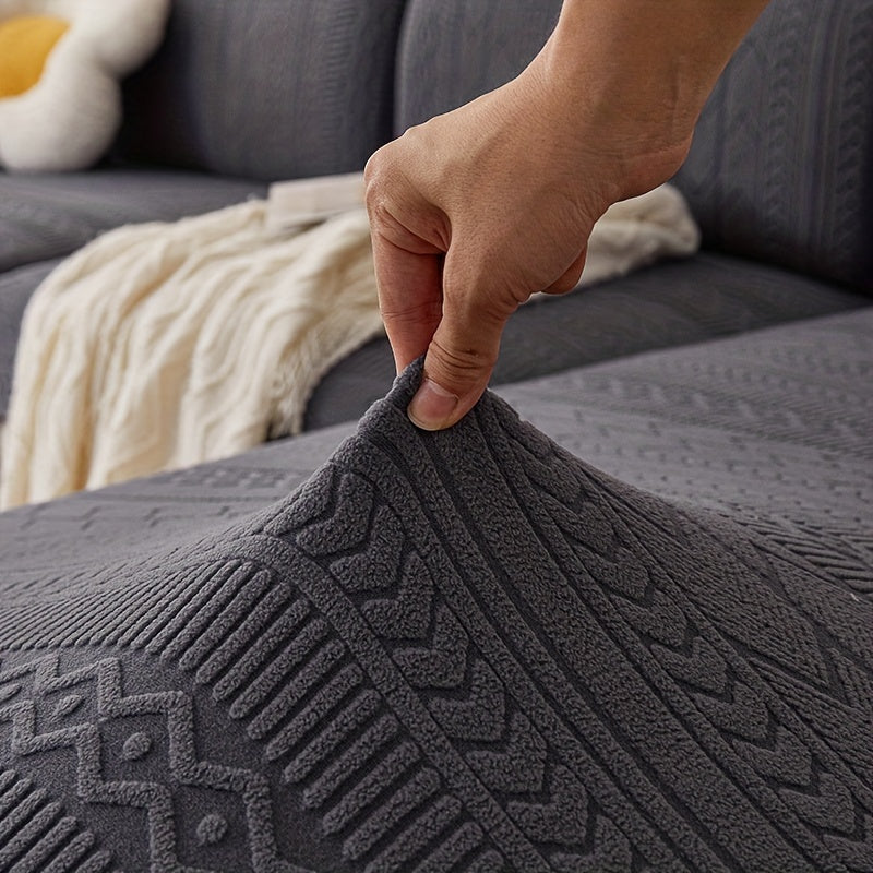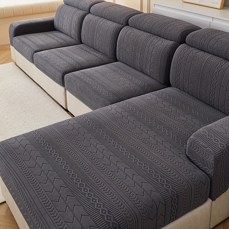 Qorong‘u kulrang chiziqli divan qopqog‘i, barcha mavsumlar uchun elastik uy himoyasi