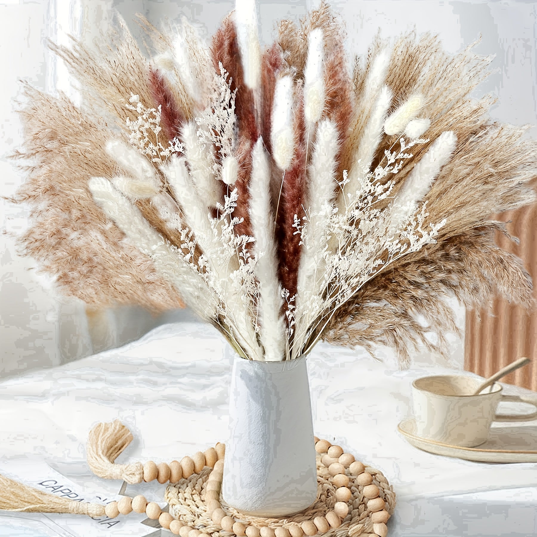Boho Chic sun'iy Pampas o'ti bezak to'plami, 50 ta sun'iy gul va barglar, uy, yotoqxona, sinf uchun