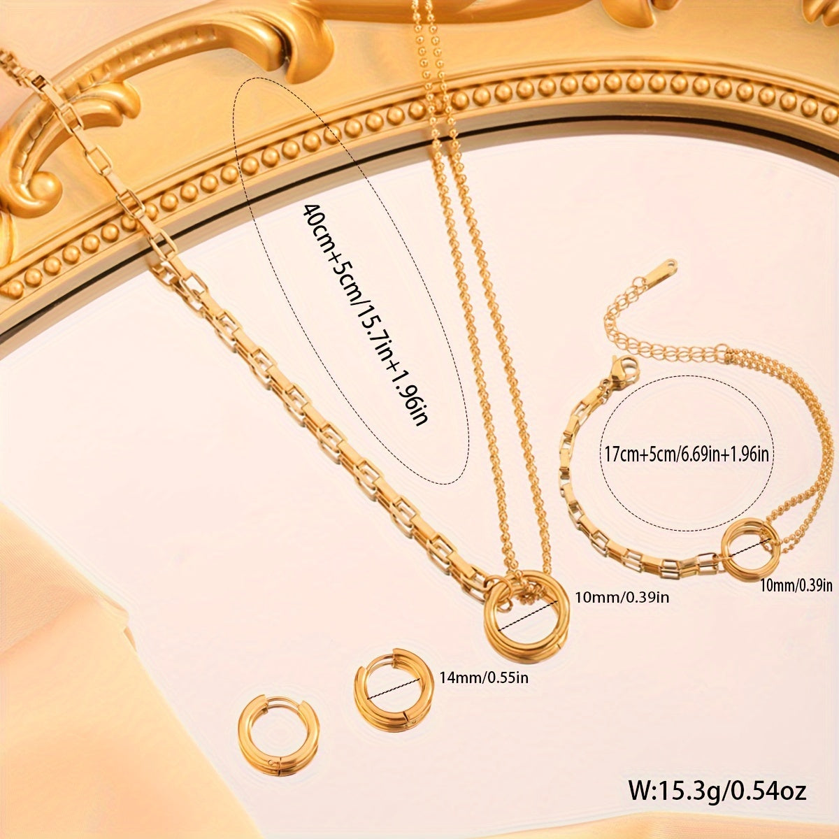 Boho uslubidagi zanglamaydigan po'latdan yasalgan zargarlik to'plami Geometrik doira taqinchoq, sirg'alar, bilakuzuk, clavicle zanjir