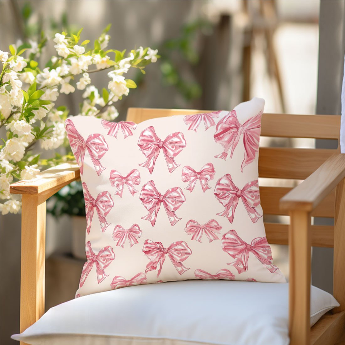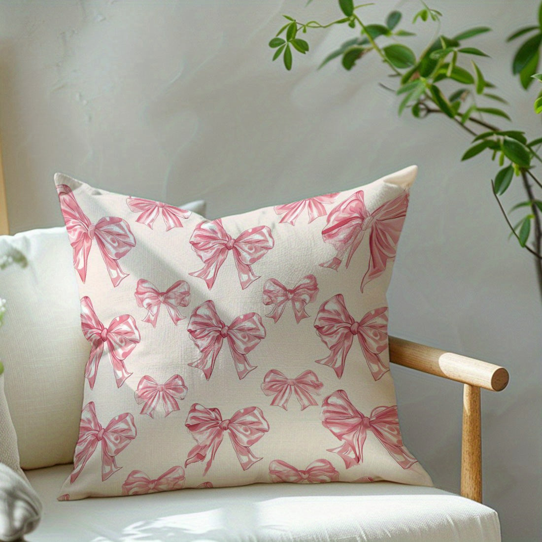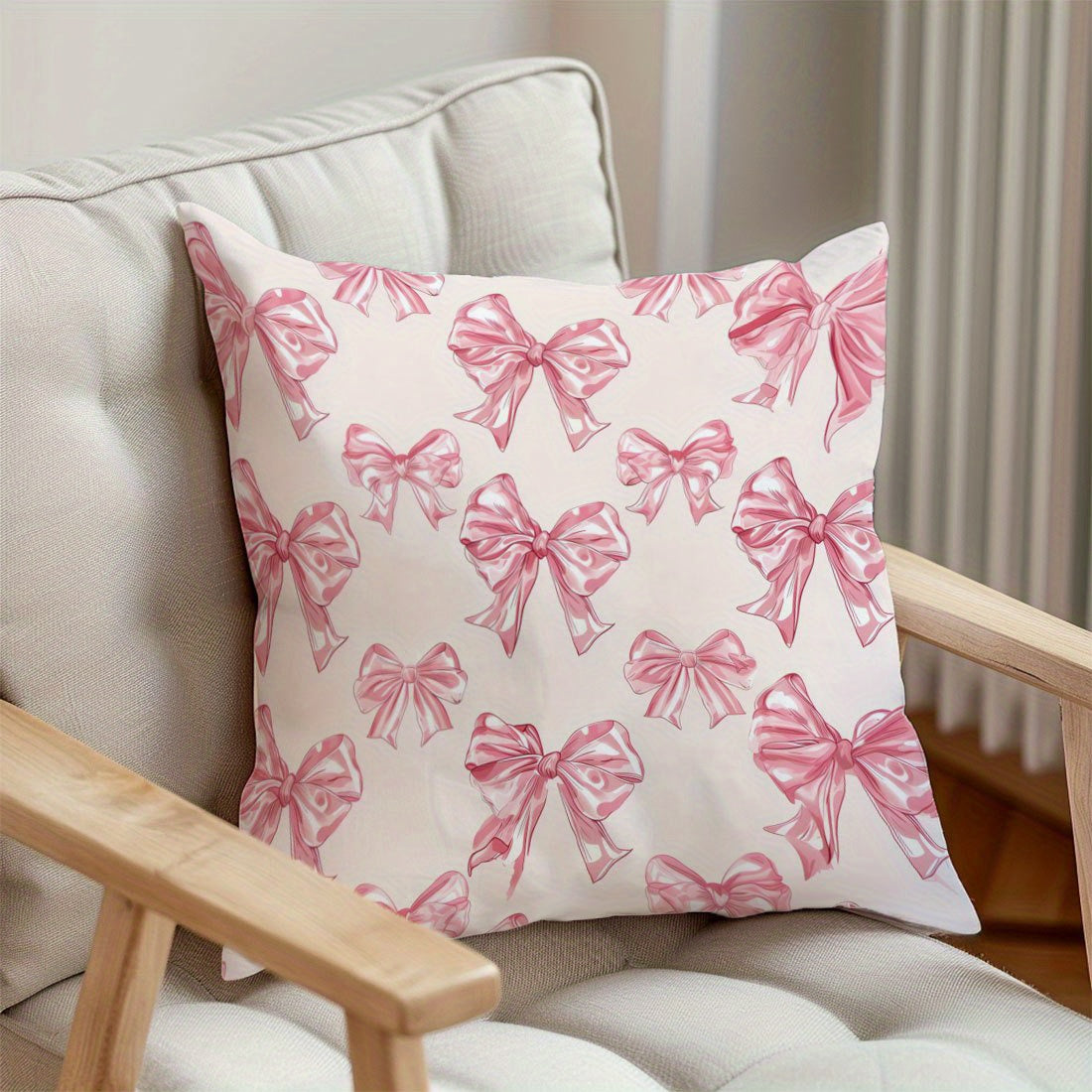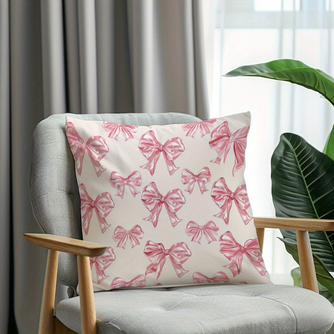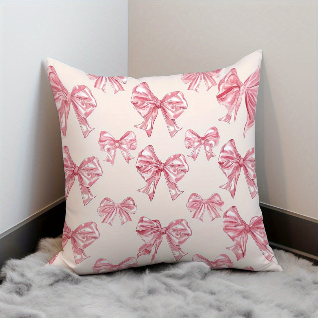 Yumshoq polyesterda bowknot printli yostiq qopqog'i, 44.96x44.96 sm, zip yopilishi bilan. Mashinada yuvish mumkin, yashash xonasi va yotoq xonasi bezatish uchun ideal. Yostiq kiritilmagan.