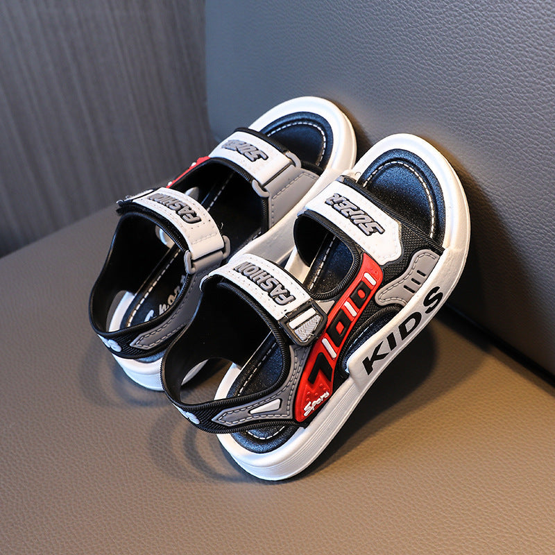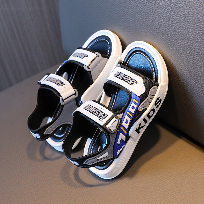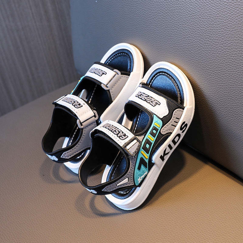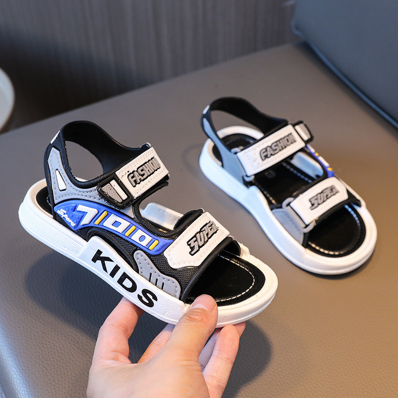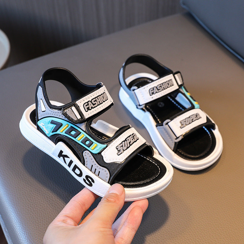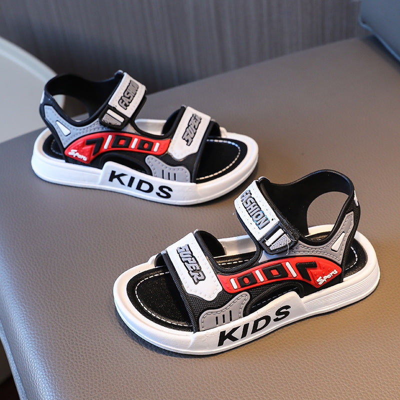Yigitlar uchun ochiq barmoqli sandallar, sirpanmaydigan taglik, kundalik, plyaj, kichkina uchun, PVC, oson qulflash va velcro