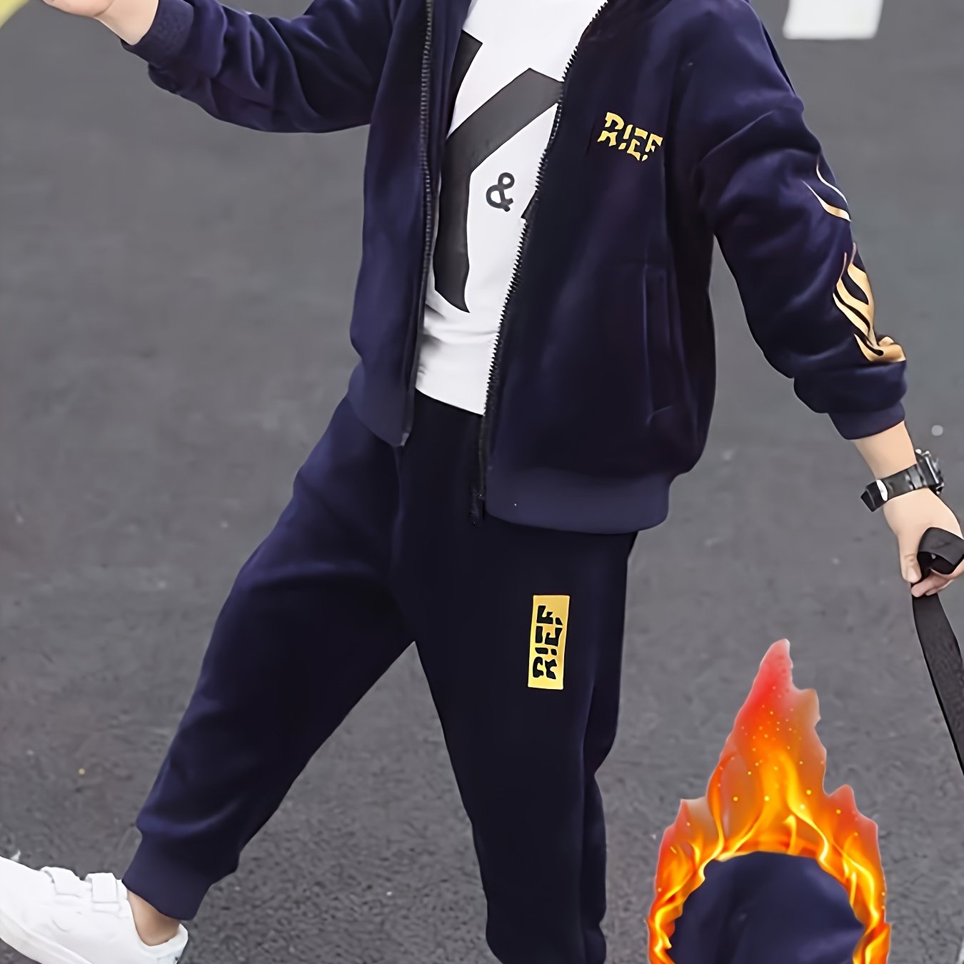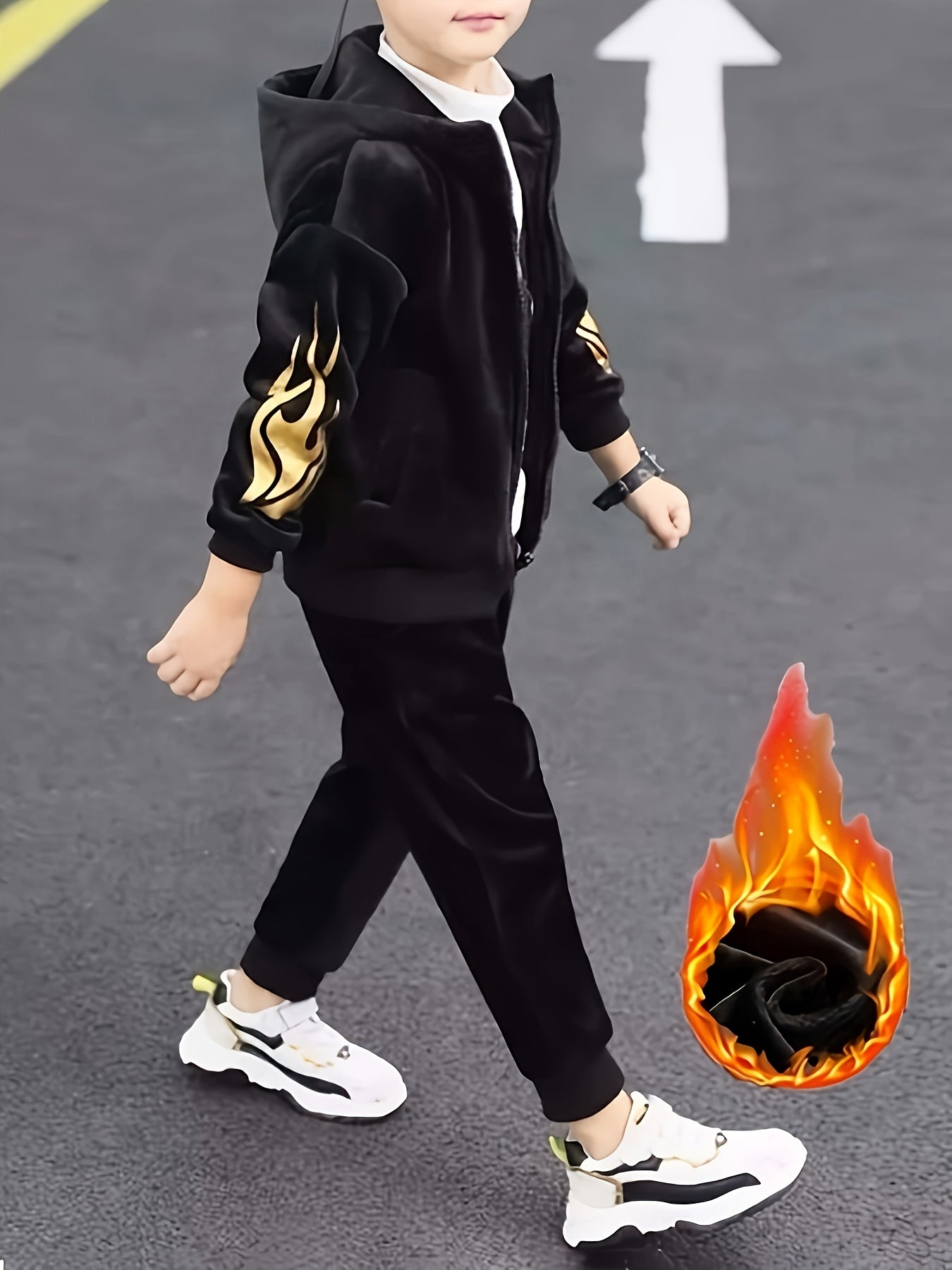 Yigitlar uchun Fleece Hoodie va Shimlar to'plami, kuz-qish bolalar uchun kundalik kiyimlar, o'rta katta