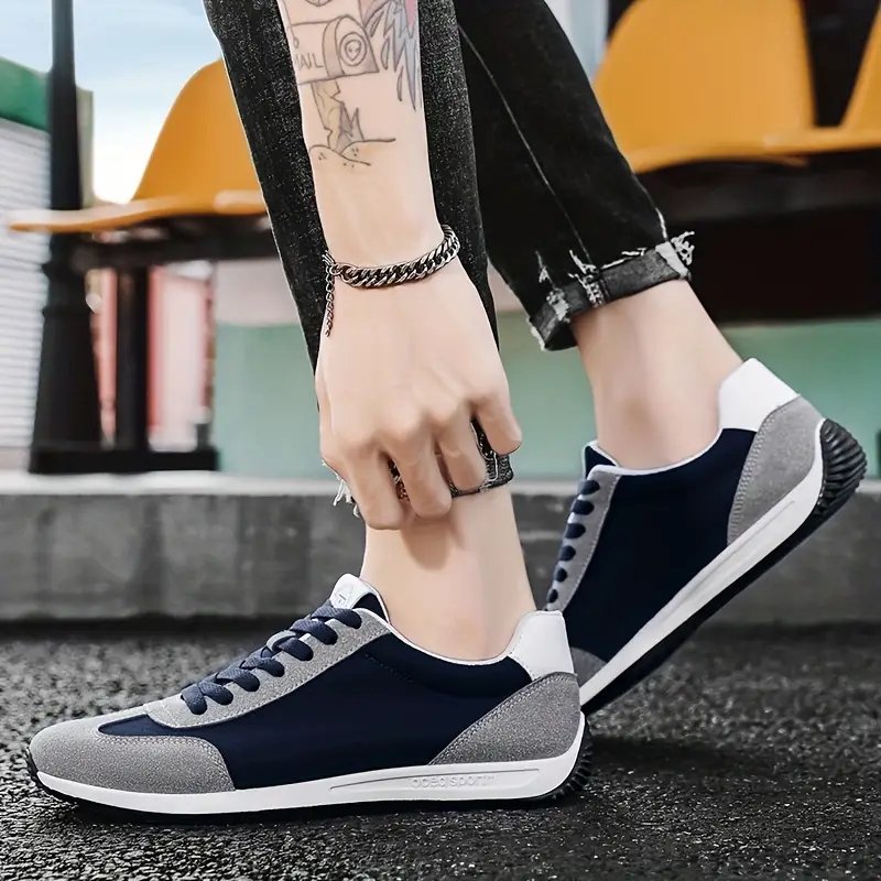 Yozgi/kuzgi yugurish uchun nafas oladigan, hidga chidamli erkaklar poyafzali. Chiziqli/qattiq dizayndagi tasodifiy ko'cha kiyimlari.