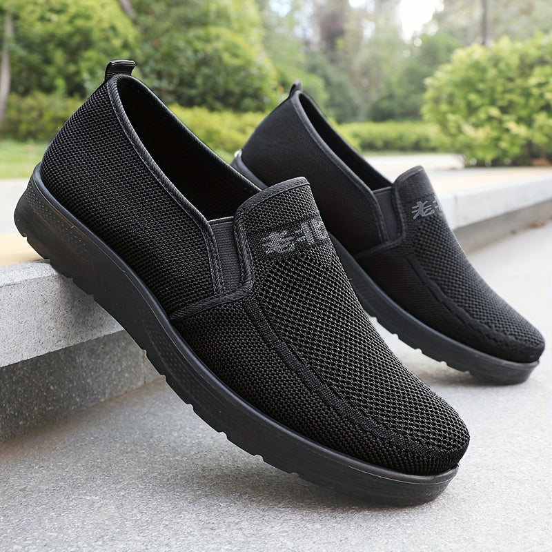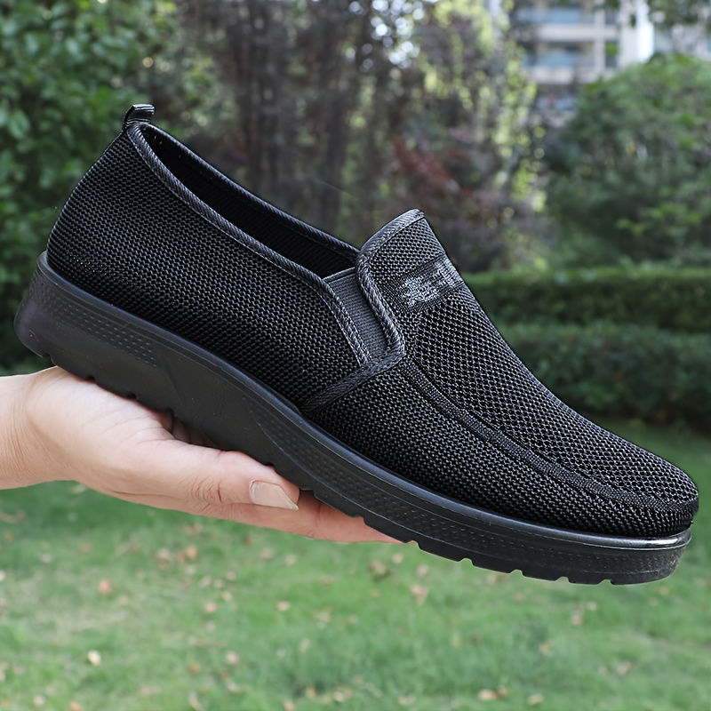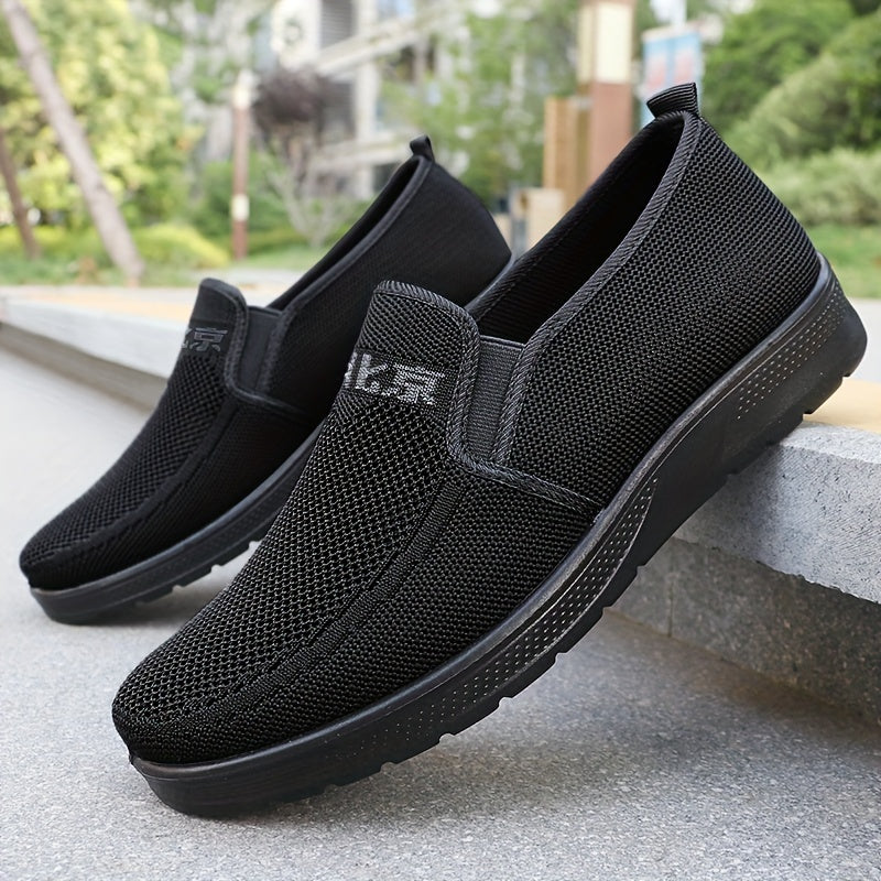 Erkaklar uchun qora rangdagi nafas oladigan, kiyish oson yurish poyabzallari, ochiq havoda faoliyatlar va har kuni qulaylik uchun mukammal.