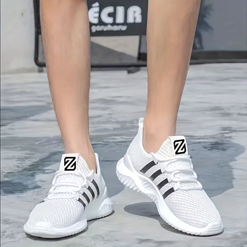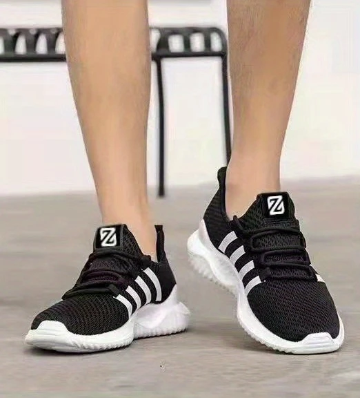 Havo o'tkazuvchi chiziqli yugurish poyafzallari erkaklar uchun, tashqi faoliyatlar uchun sirpanmaydigan bog'ichli krossovkalar