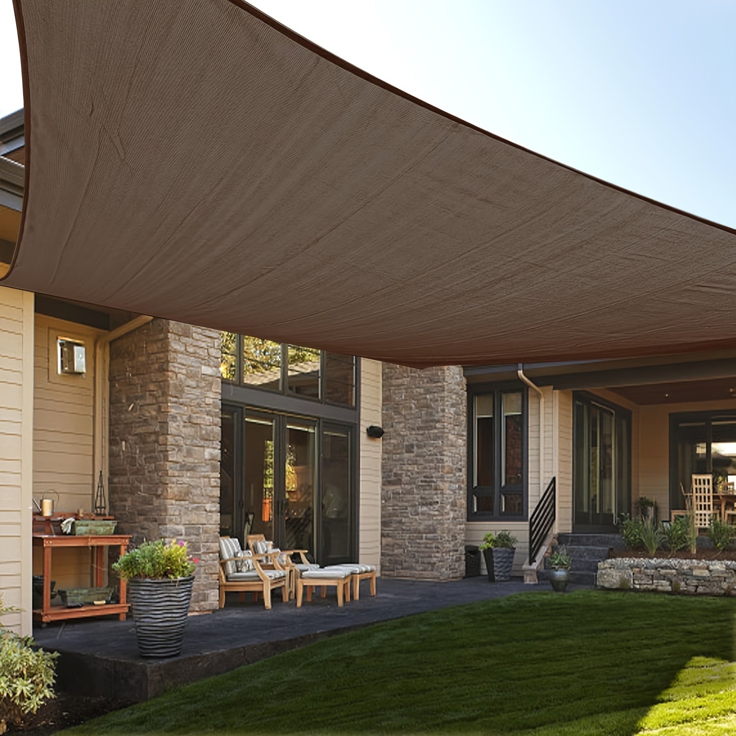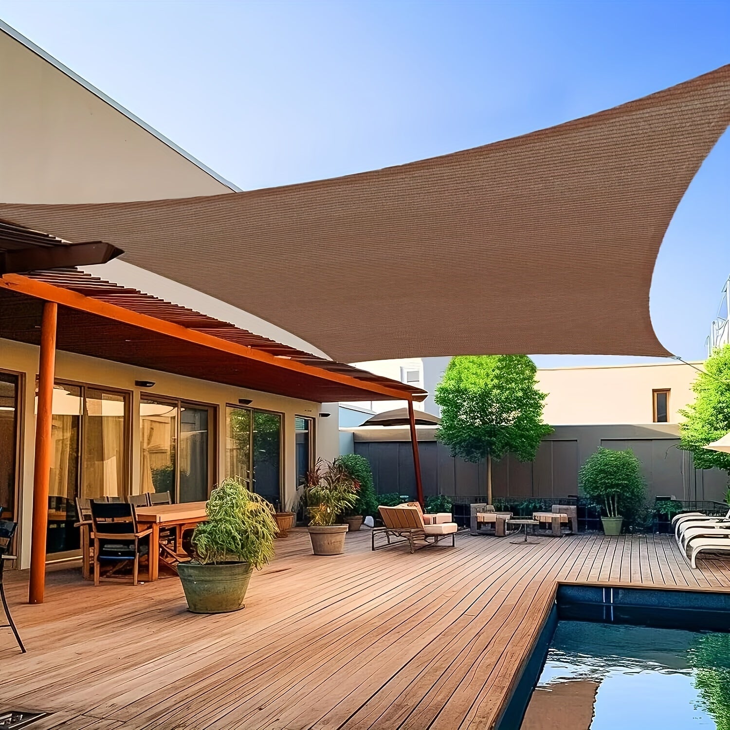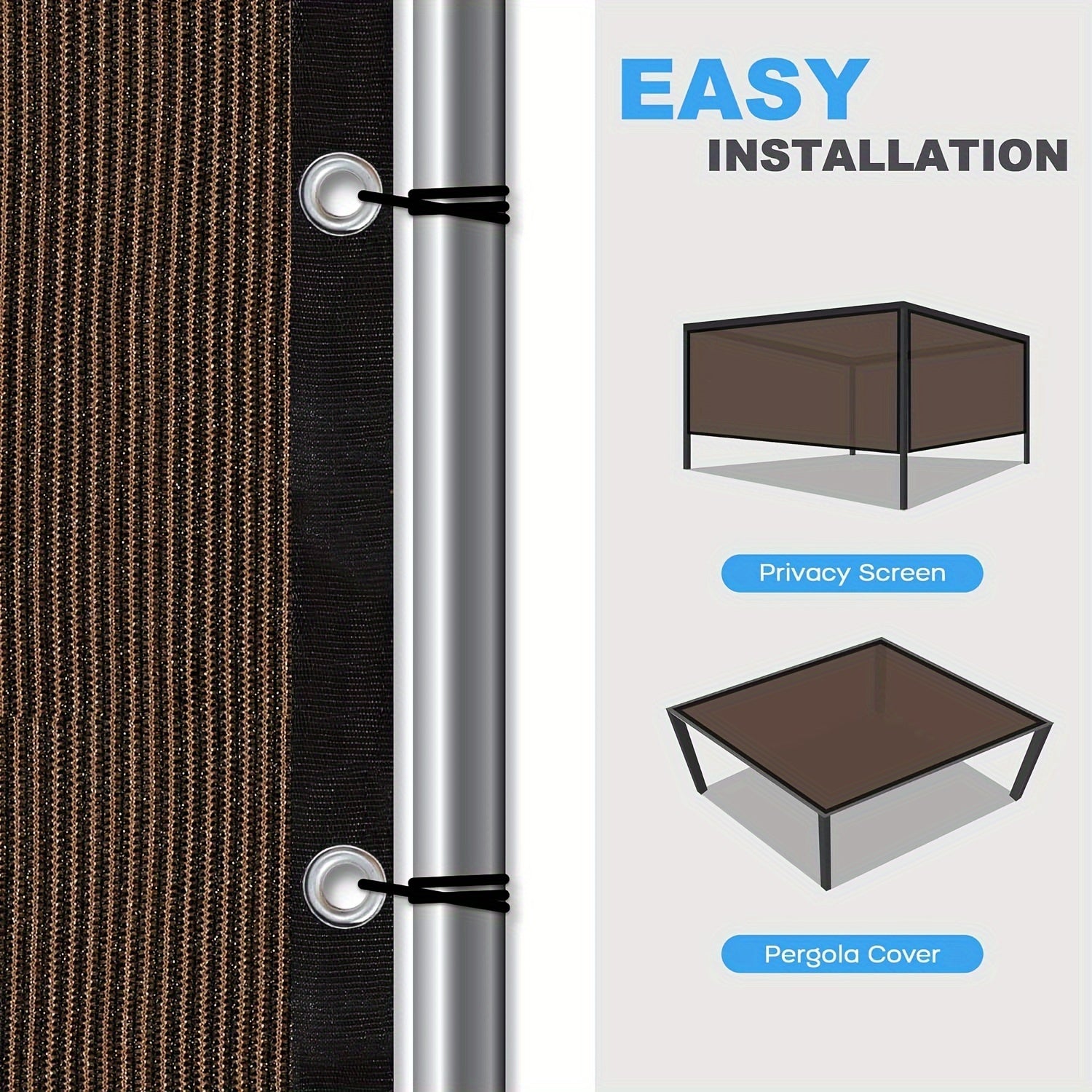 Qorong‘u jigarrang to‘g‘ri burchakli quyosh nurlari uchun soyabon, tashqi shaxsiylik uchun UV blokirovka qilish, verandaga, bog‘ga, terasga