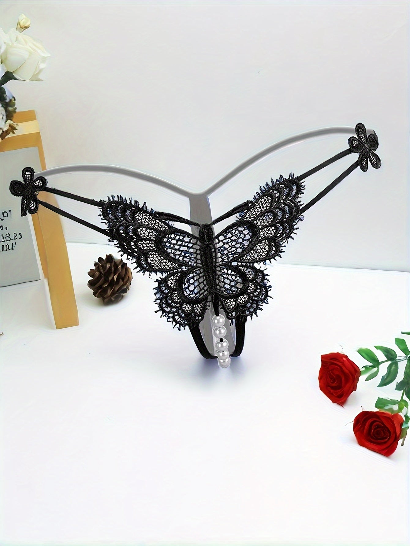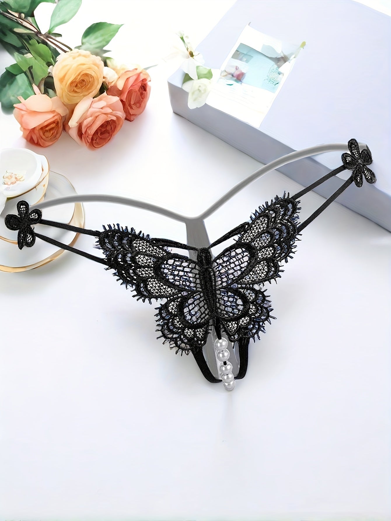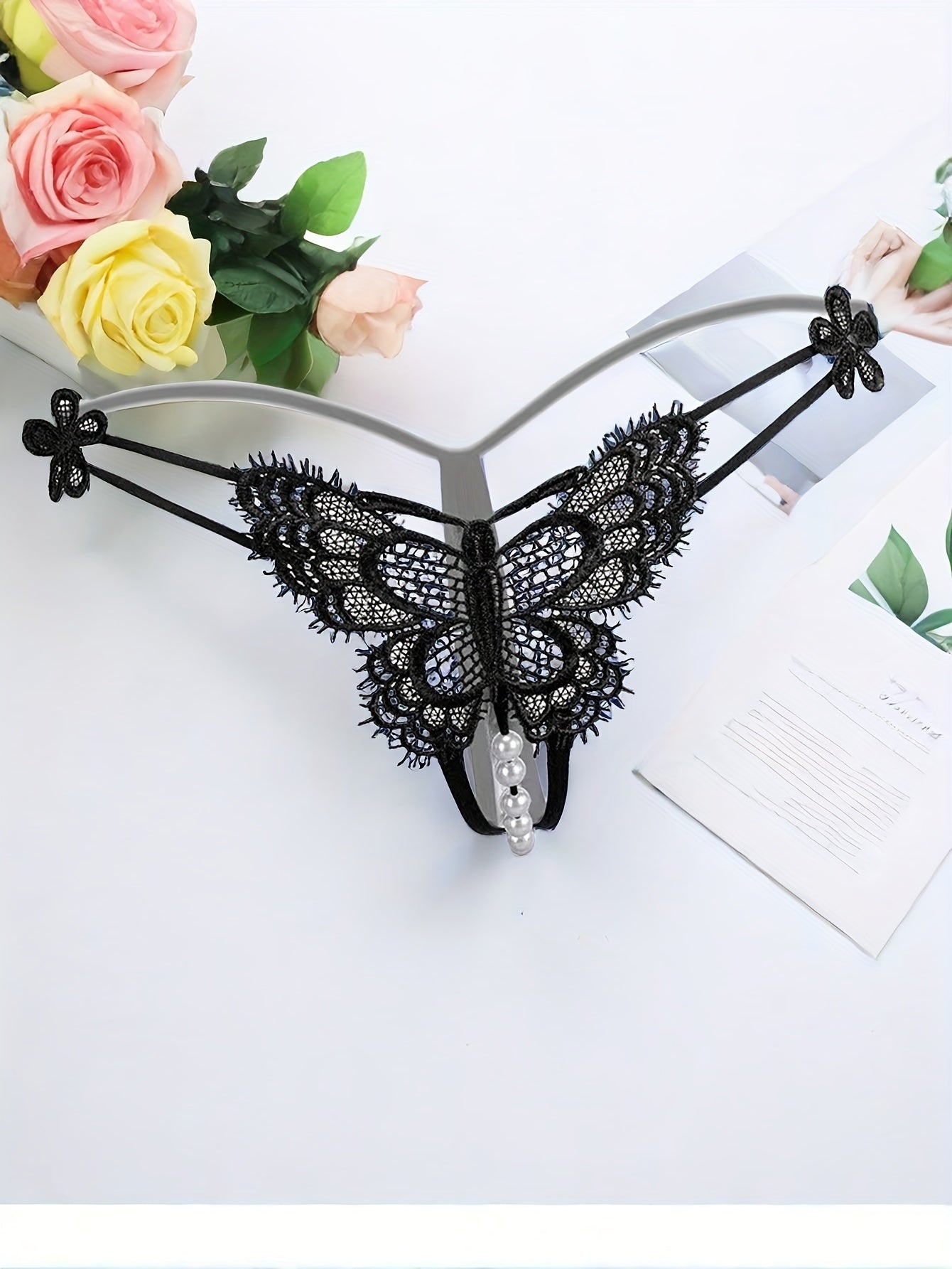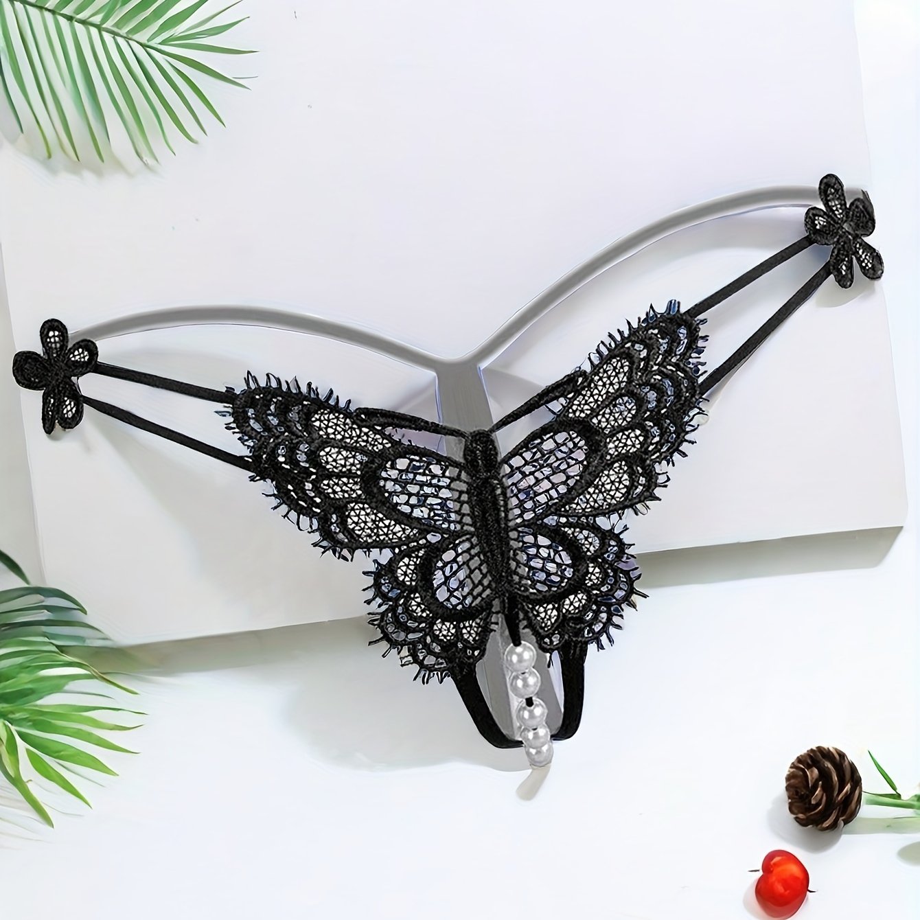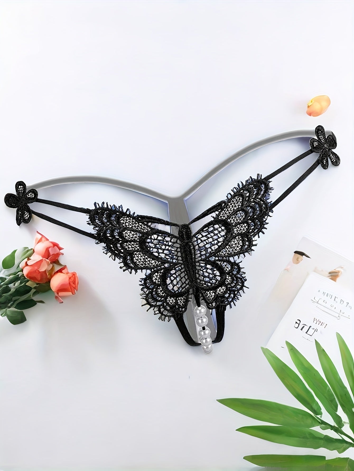 Ayollar uchun kapalak marjonlari bilan ochiq qorin thong, jozibali va shaffof.