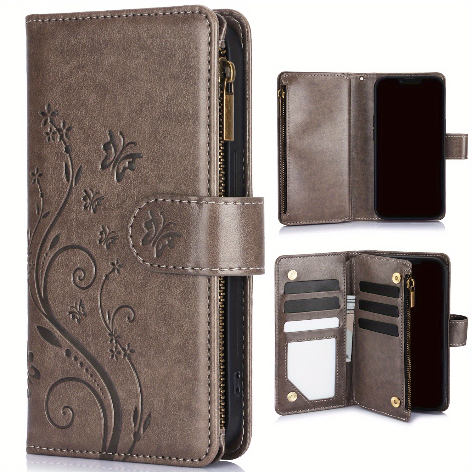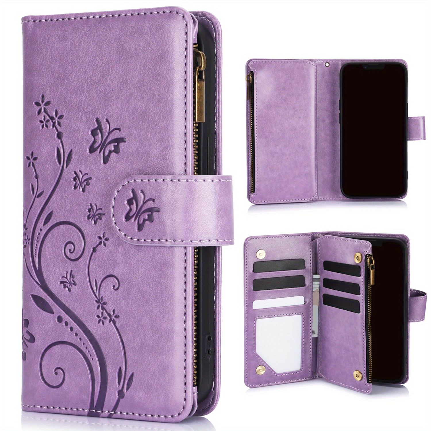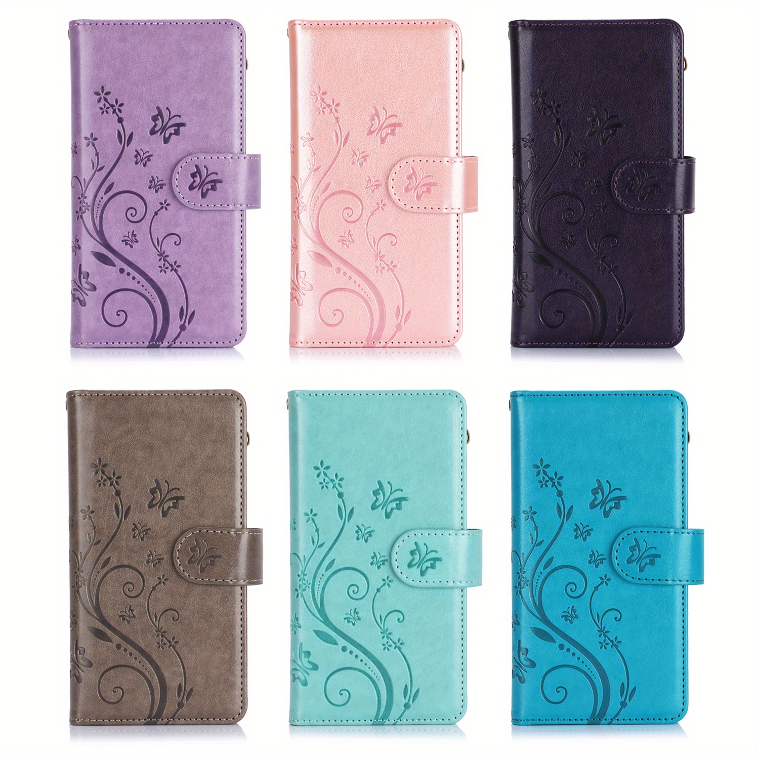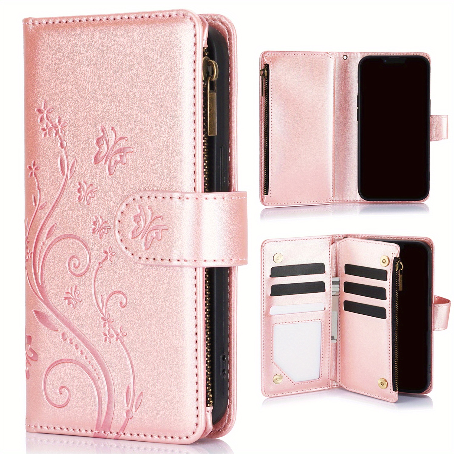 Kelebek Gul Sun'iy Charmli Zipper Hamyon Qopqog'i SamSung Galaxy A72, A52, A42, A12, A71, A51, A70, A50, A30, S, A40, A20, A10, E 4G/5G uchun Lanyard, Kart Slot, Stend, Magnit Telefon bilan
