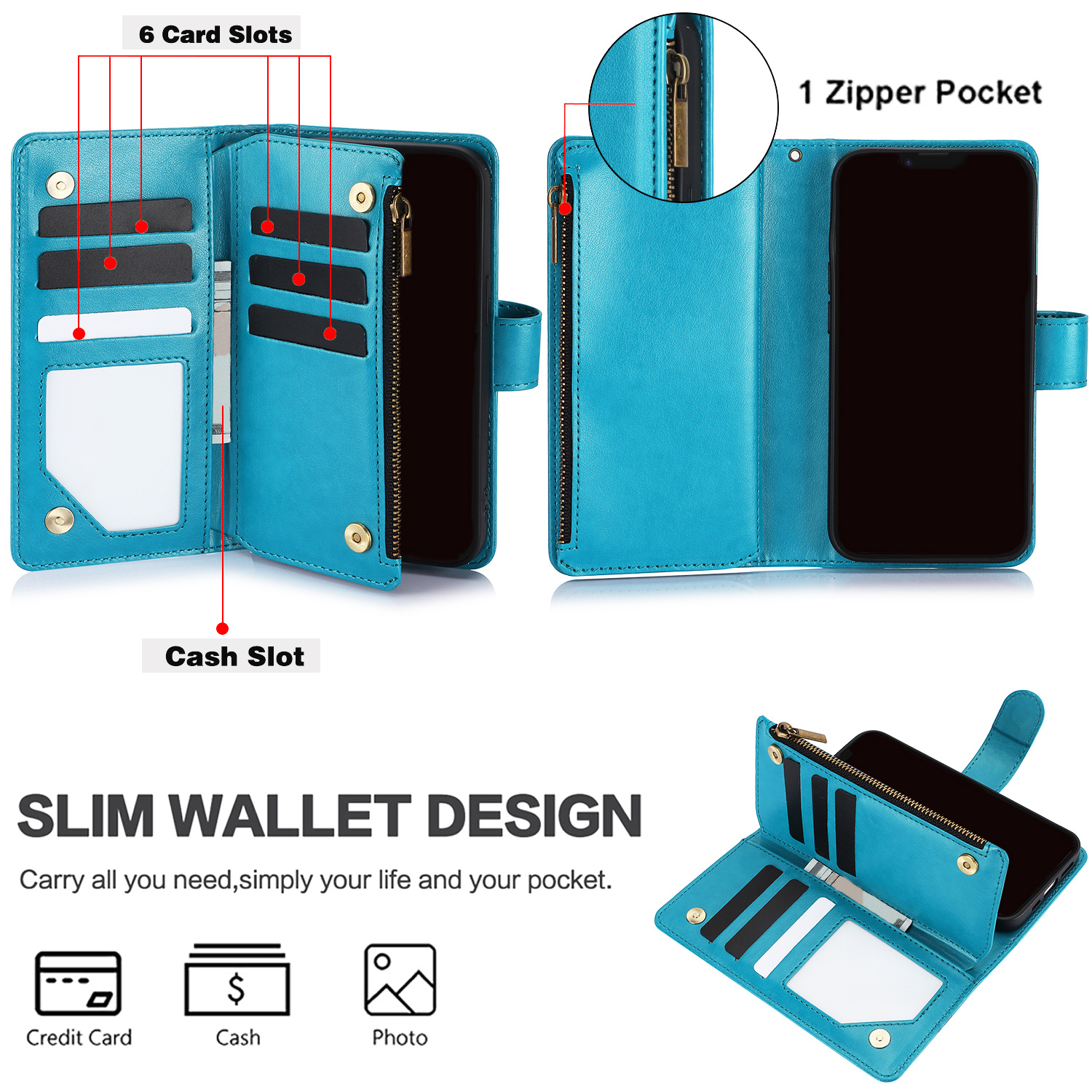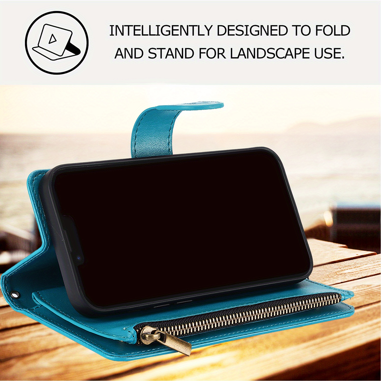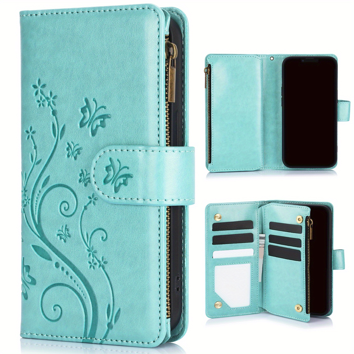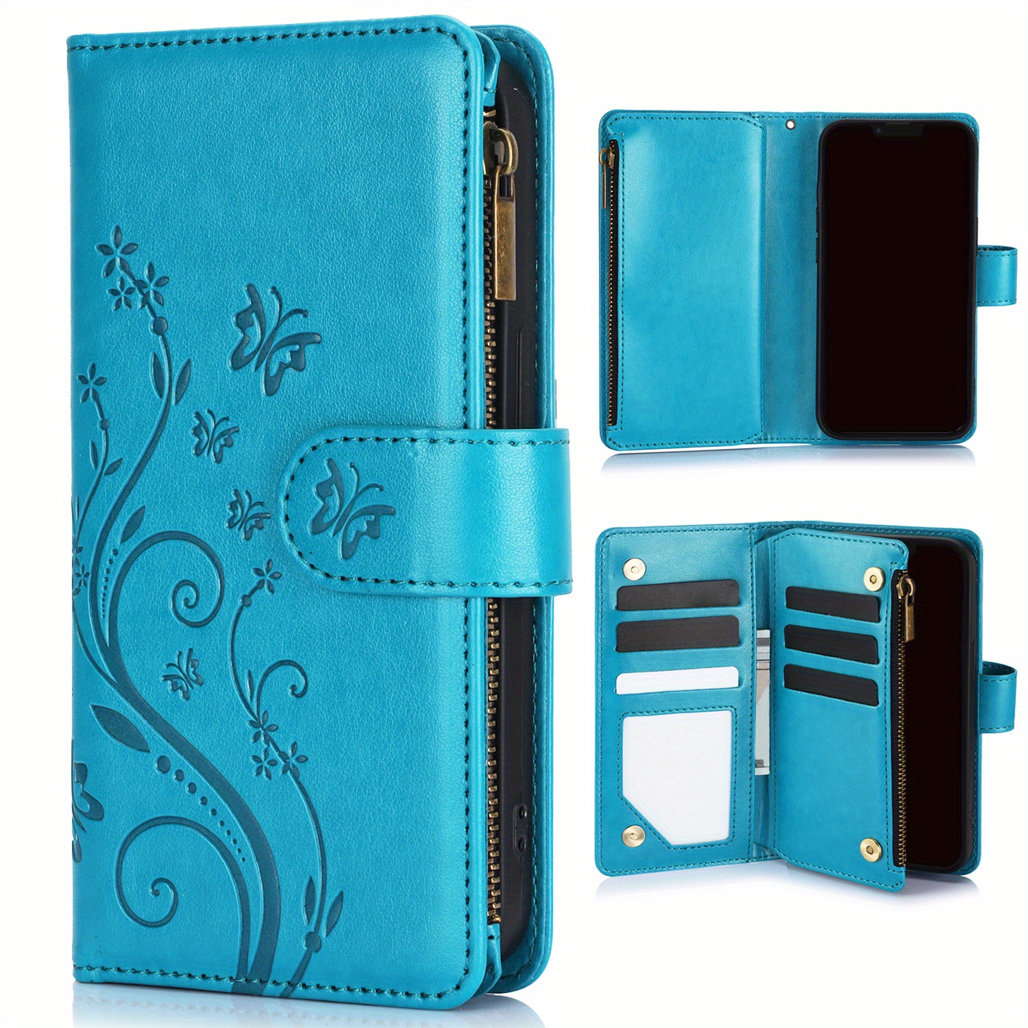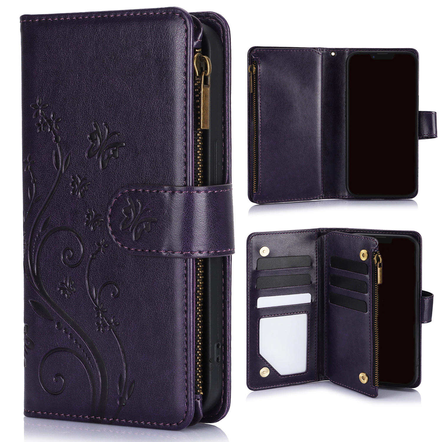 Kelebek Gul Sun'iy Charmli Zipper Hamyon Qopqog'i SamSung Galaxy A72, A52, A42, A12, A71, A51, A70, A50, A30, S, A40, A20, A10, E 4G/5G uchun Lanyard, Kart Slot, Stend, Magnit Telefon bilan