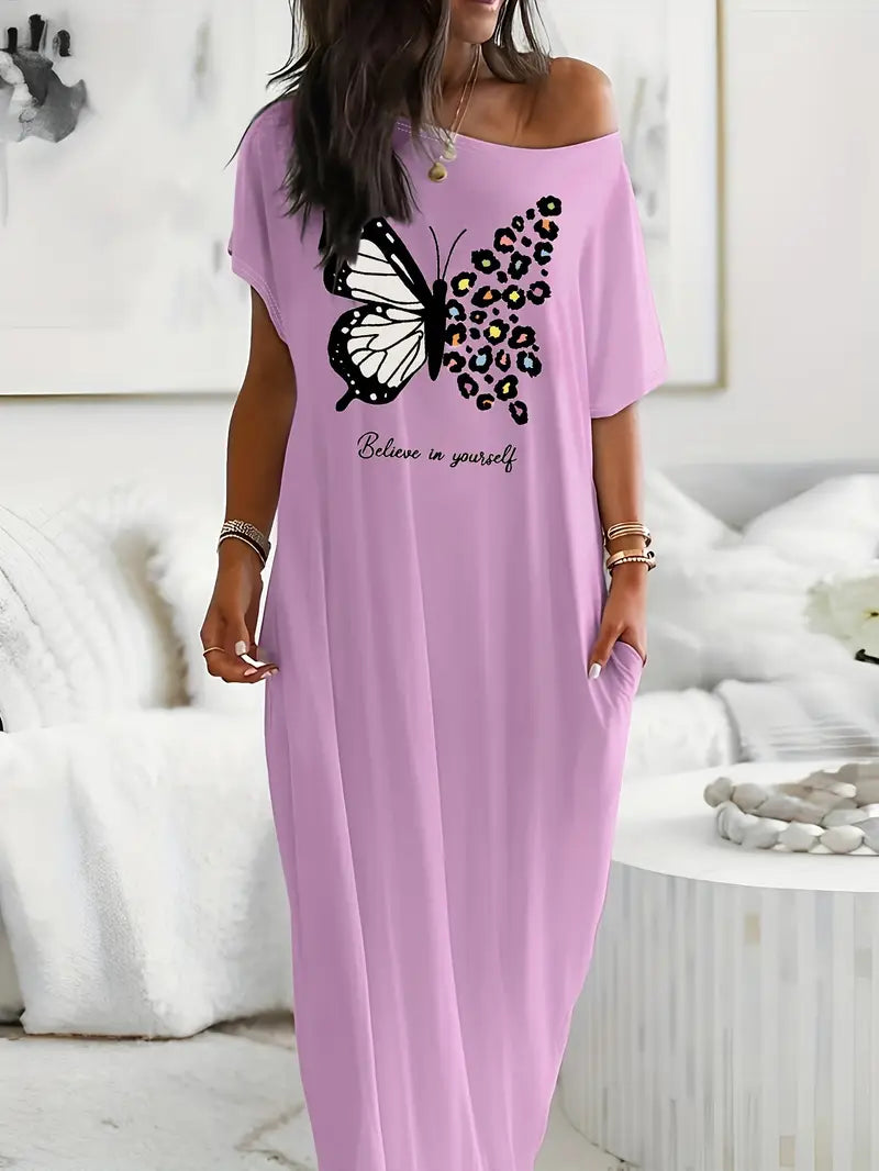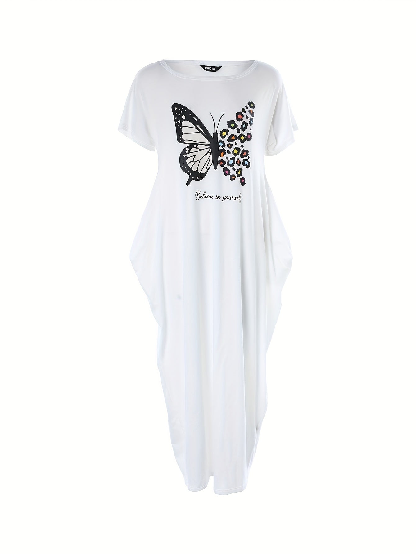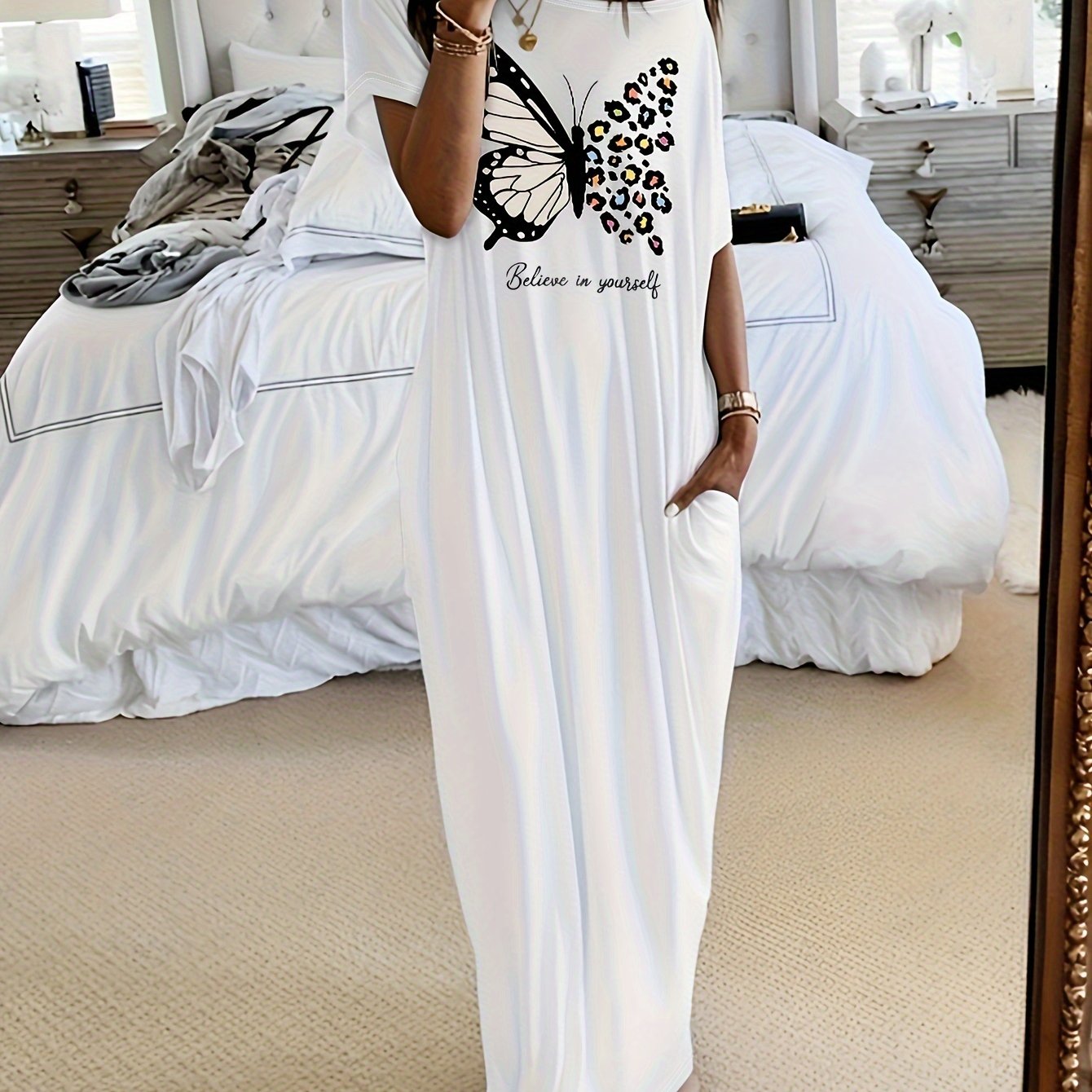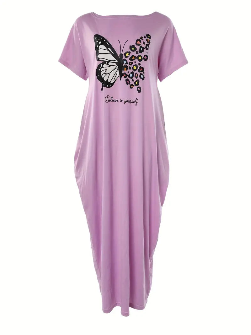 Ayollar uchun kapalak bosma lounge kiyi, qisqa qoʻl, kundalik uy kiyimi