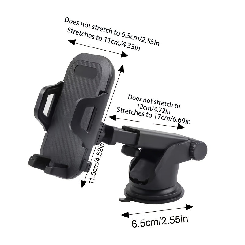 Avtomobil paneli uchun telefon o'rnatgich, yopishqoq jel padlari bilan, qora rang, transport vositasi uchun smartfon tutgichi