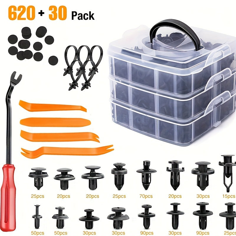 Avtomobilni bosish uchun tutqich kliplar to'plami, plastmassa eshik paneli bumper fastenerlari, 620 dona