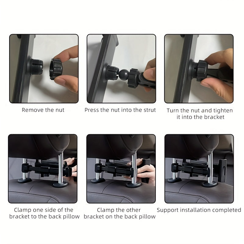 Avtomobil o'rindig'i orqa yostiq bilan tortib olinadigan aylanadigan planshet va telefon tutqichli