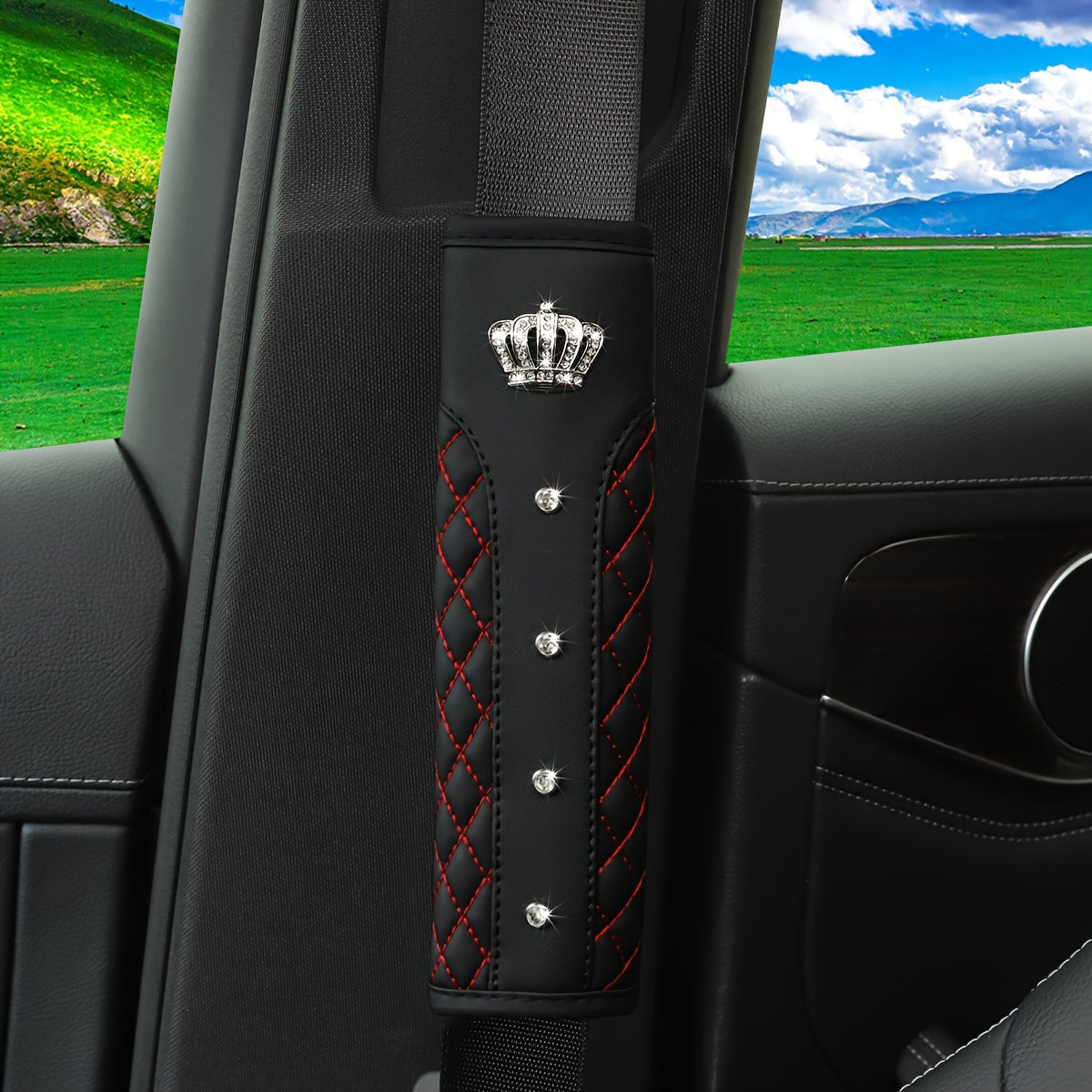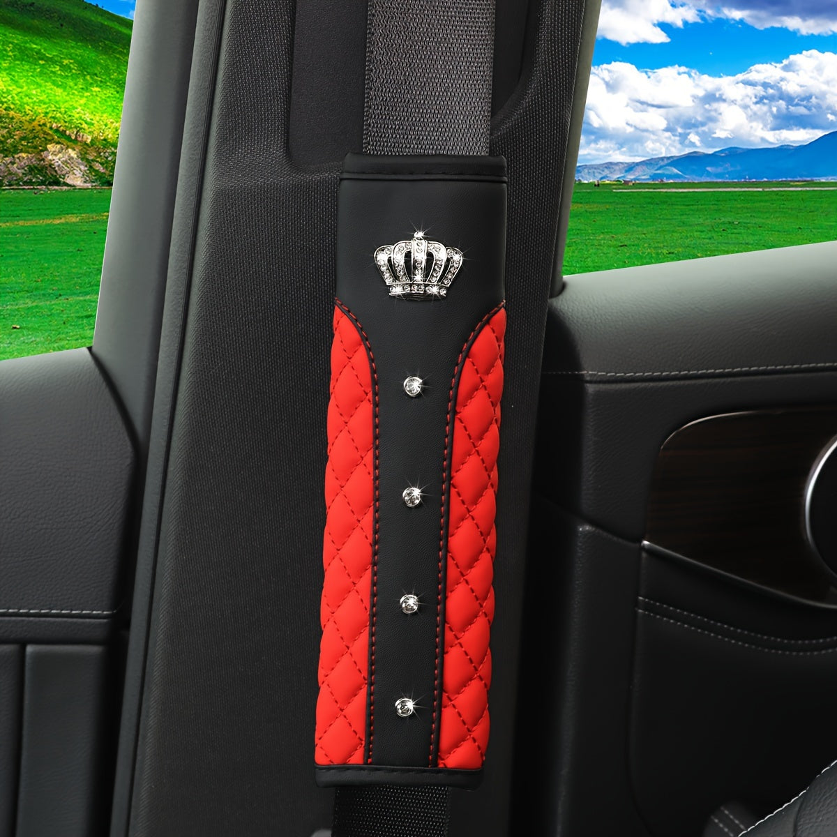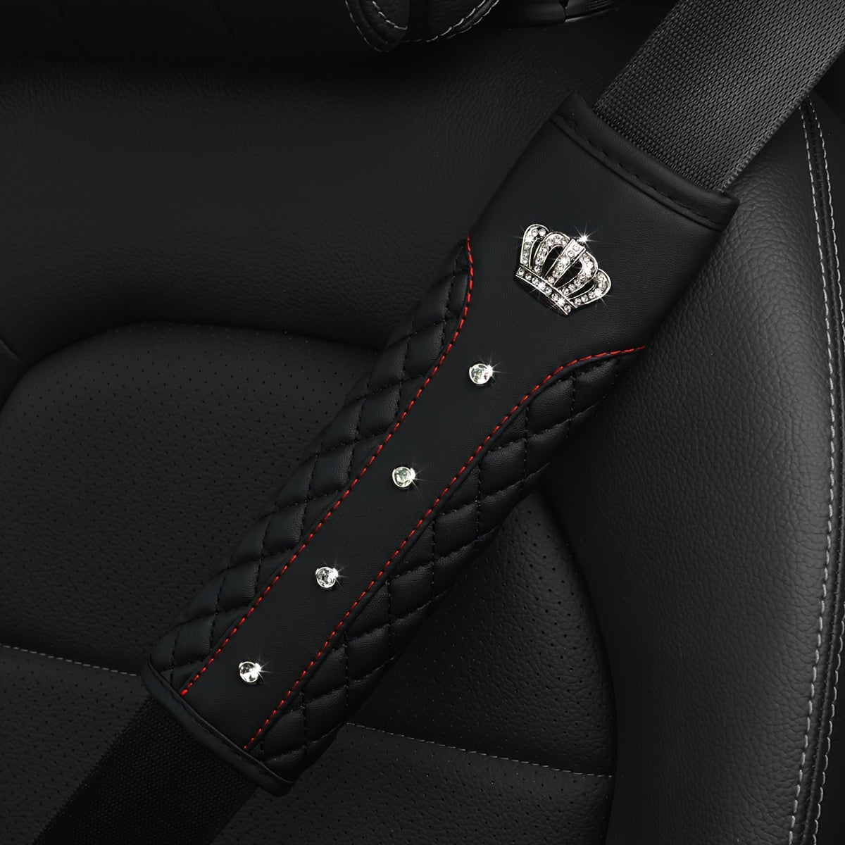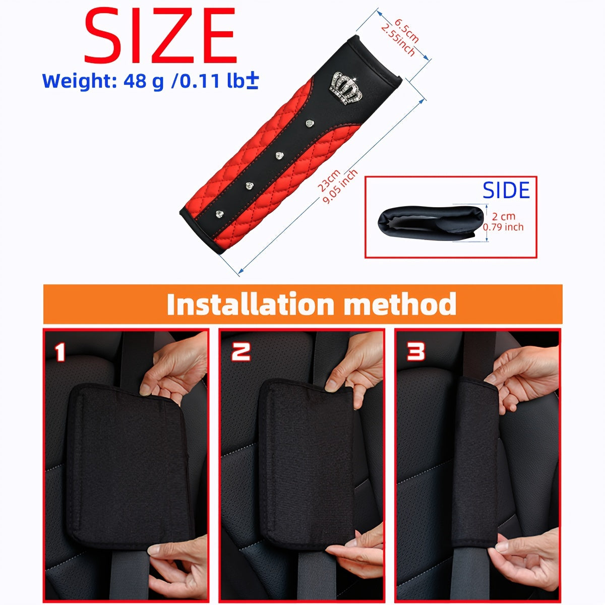 Avtomobil o'rindiq kamarining yelka yostiqchalari Qizil Qora Qilinchli PU charm Rhinestone taxtasi