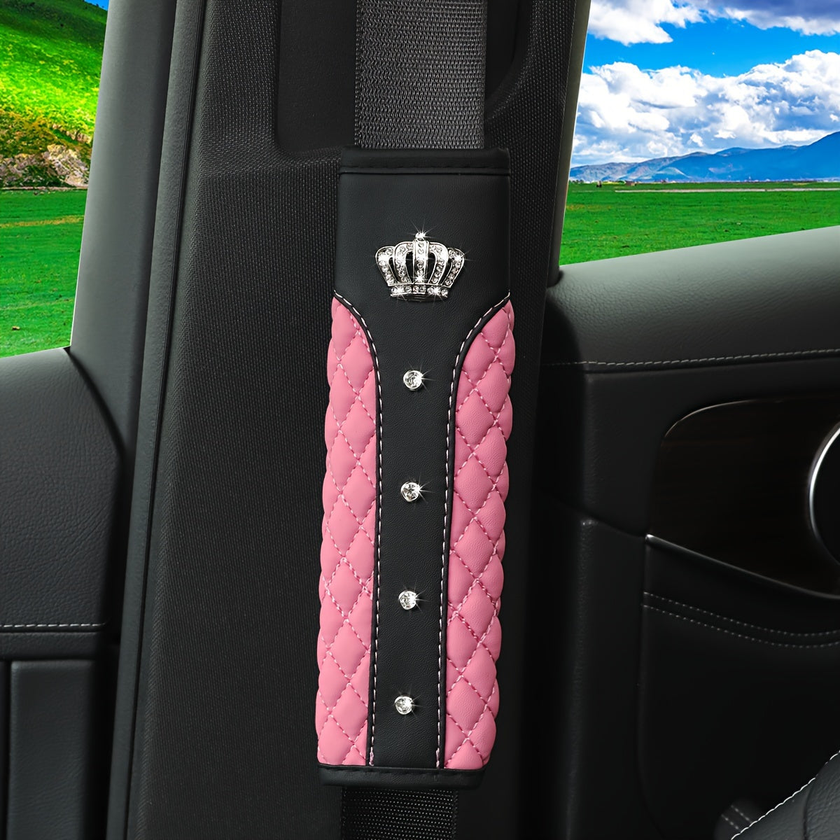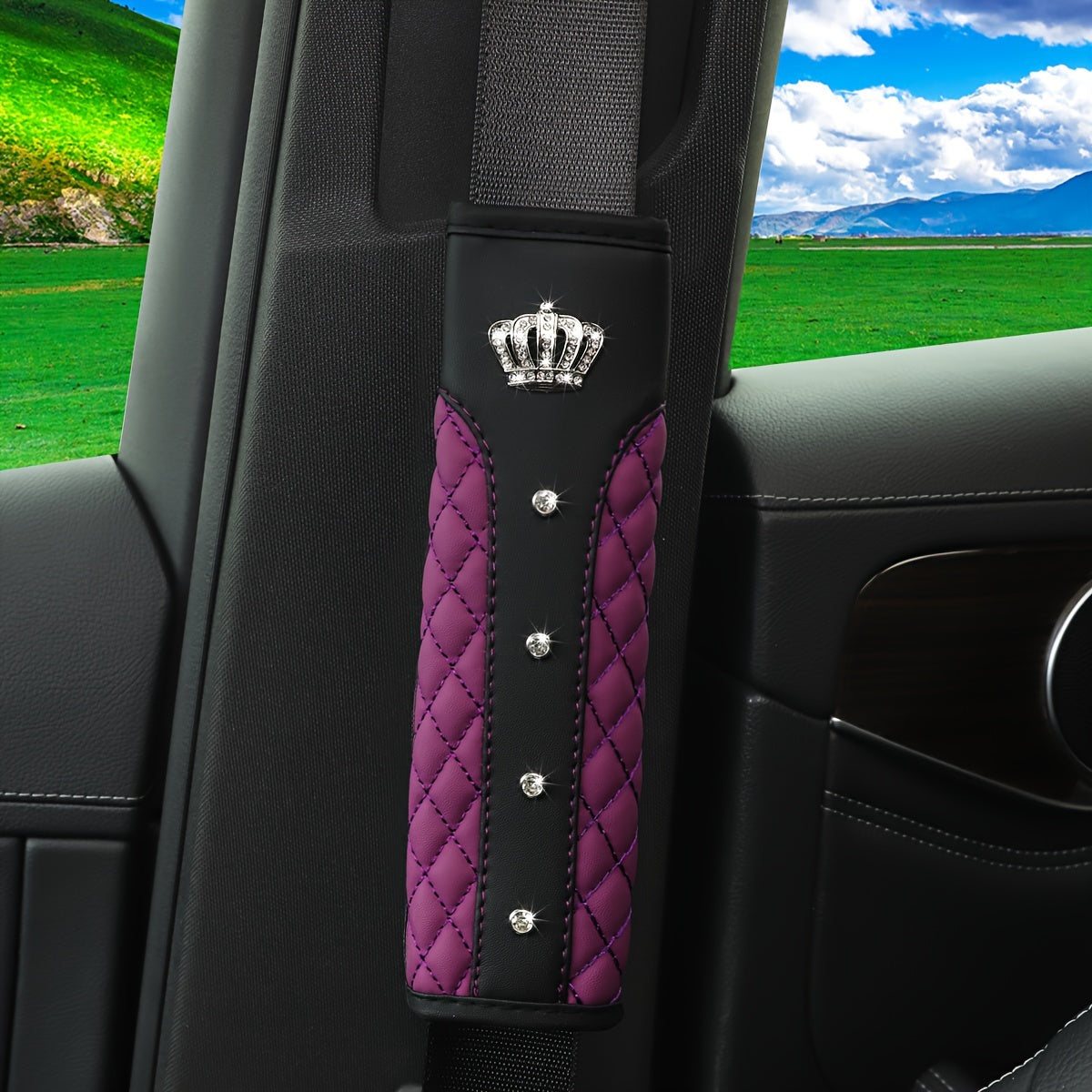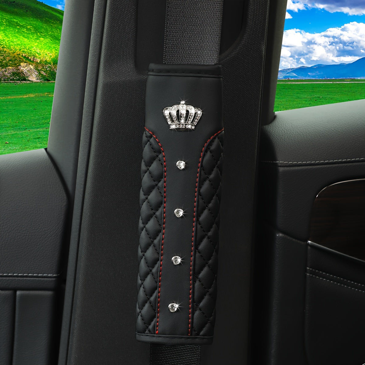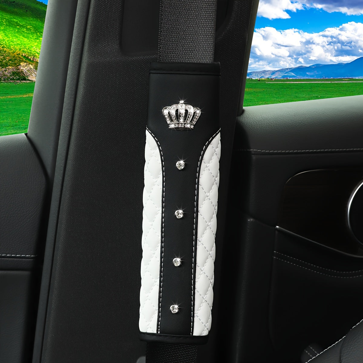 Avtomobil o'rindiq kamarining yelka yostiqchalari Qizil Qora Qilinchli PU charm Rhinestone taxtasi