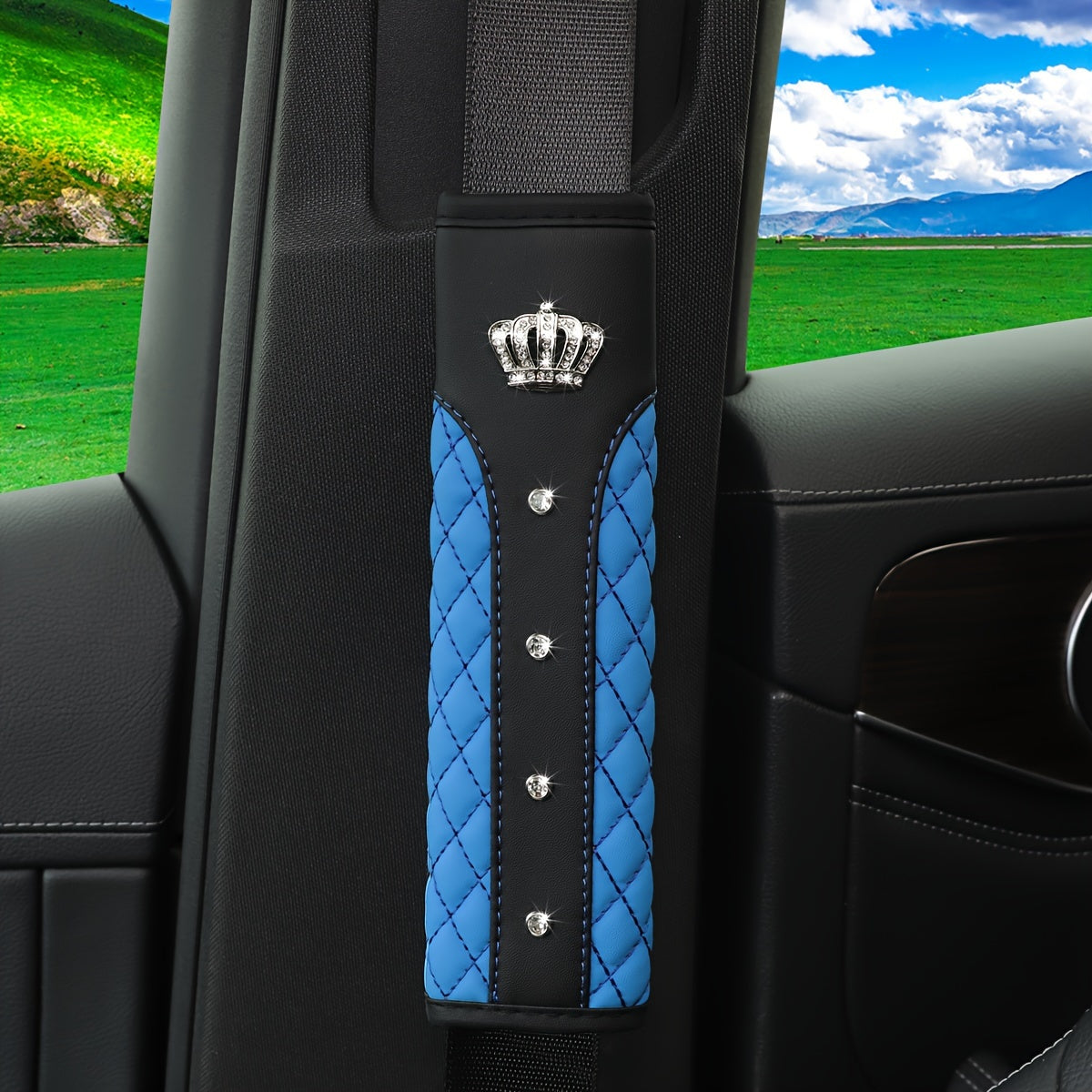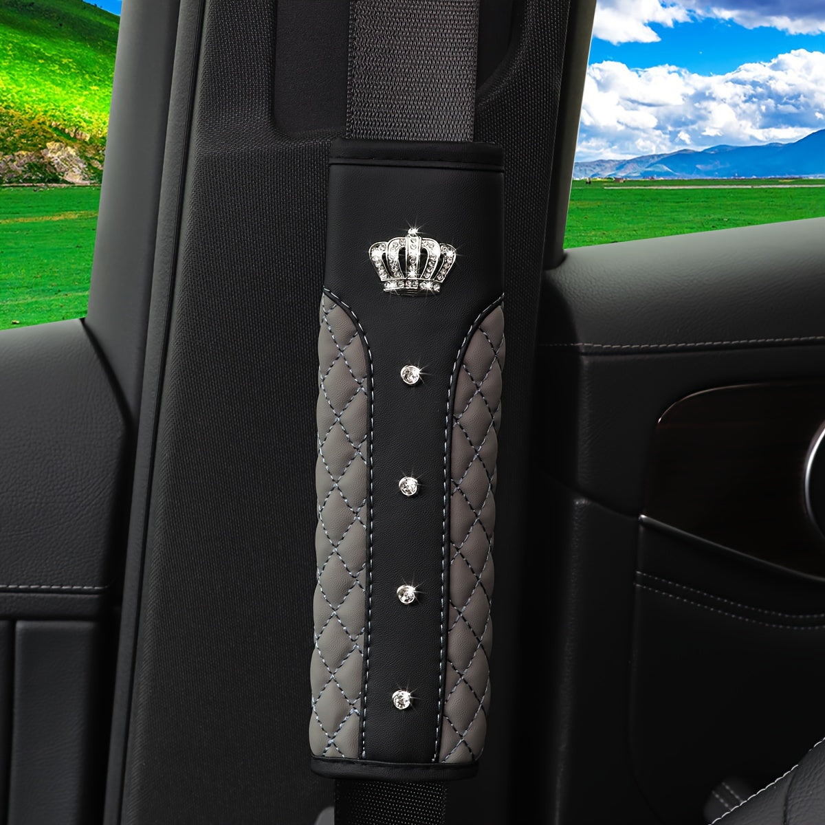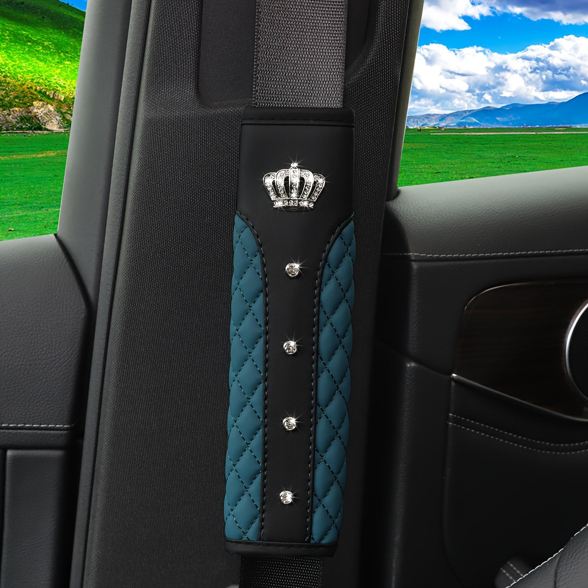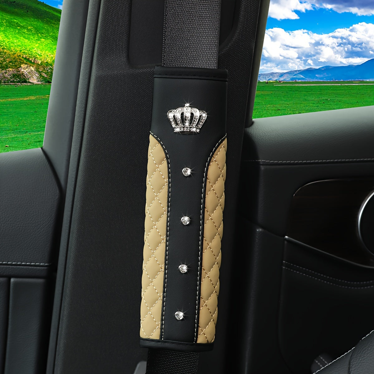 Avtomobil o'rindiq kamarining yelka yostiqchalari Qizil Qora Qilinchli PU charm Rhinestone taxtasi