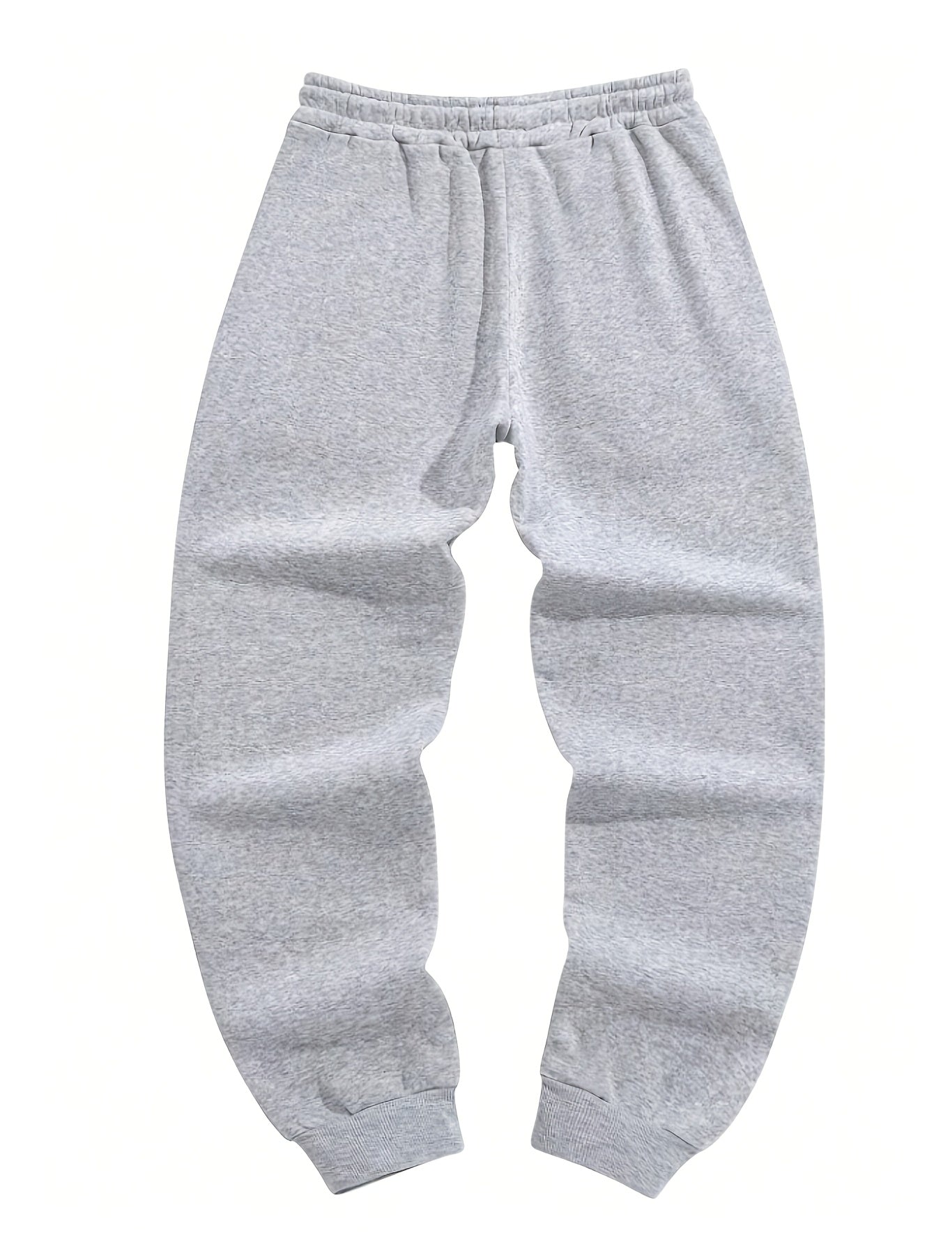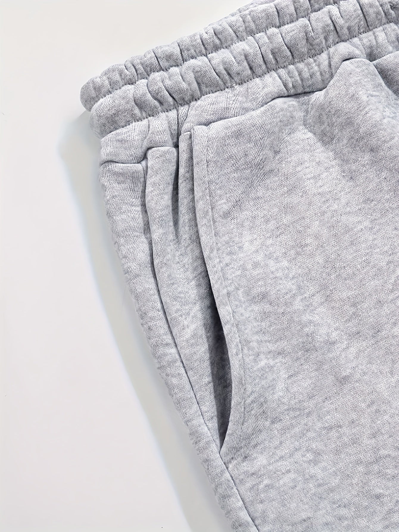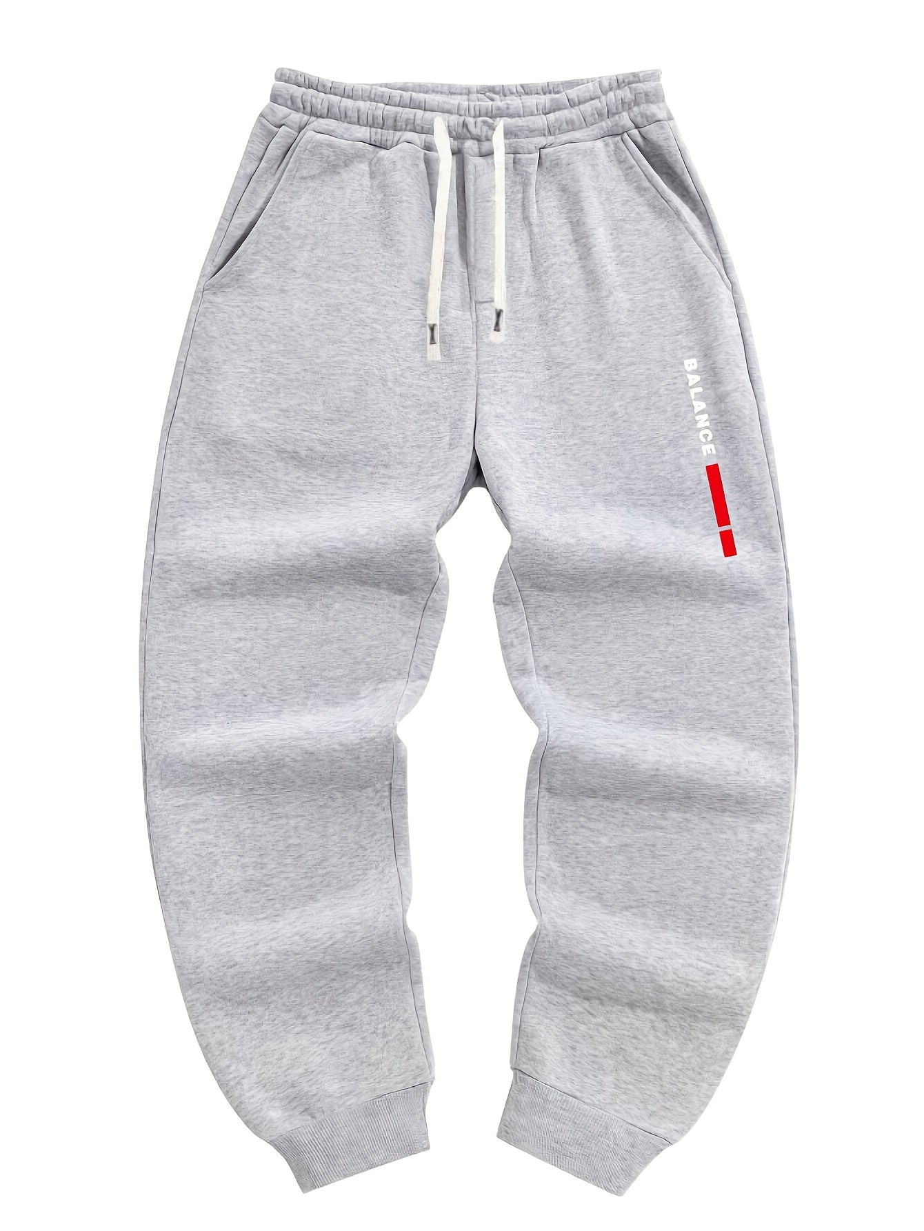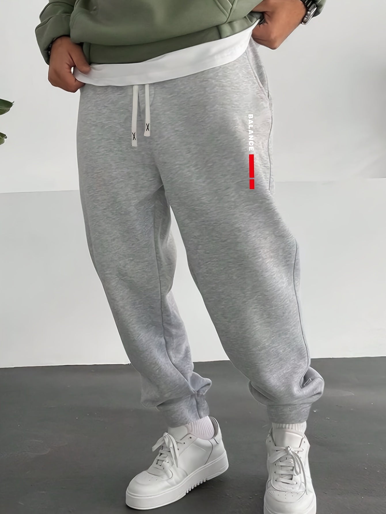 Erkaklar uchun tasodifiy sport shimlari, harflar bosma, polyester to'qima matodan tayyorlangan, cho'ziluvchan. Oddiy kesim, tortishqichli bel, kuz/qish mavsumi uchun qulay.