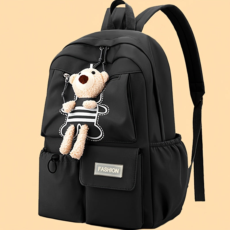 Tassel bezakli tasodifiy nylon ayollar ruksak, yengil to'quv bir rangli maktab sumkasi, sozlanadigan kamarlar, zipper yopilishi, polyester astar - yuvish shart emas.