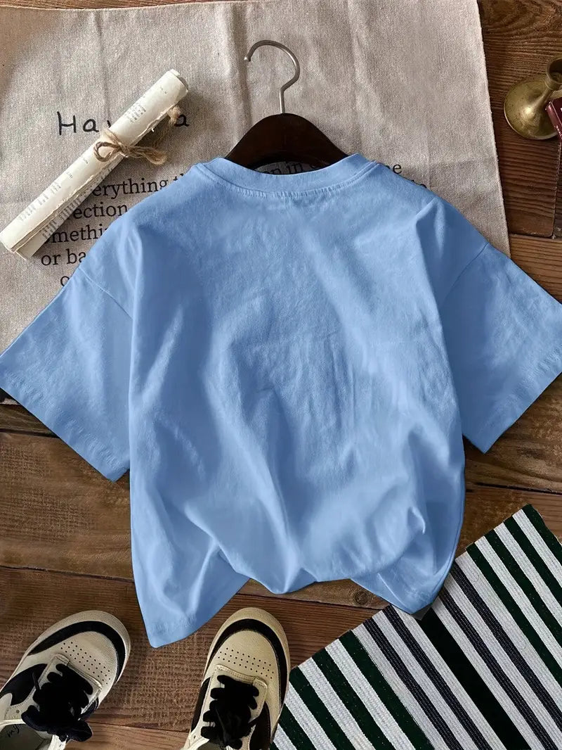 Bahor yoz uchun tasodifiy bosma polyester futbolka, dumaloq bo'yin bilan