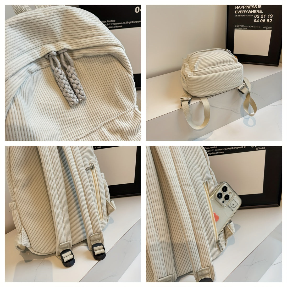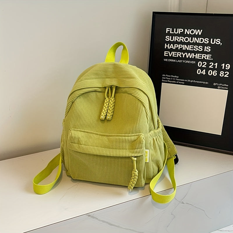 Talabalar uchun mo'ljallangan, zamonaviy va qish mavsumi uchun mustahkam tasma bilan chiziqli korduroy ruksak.