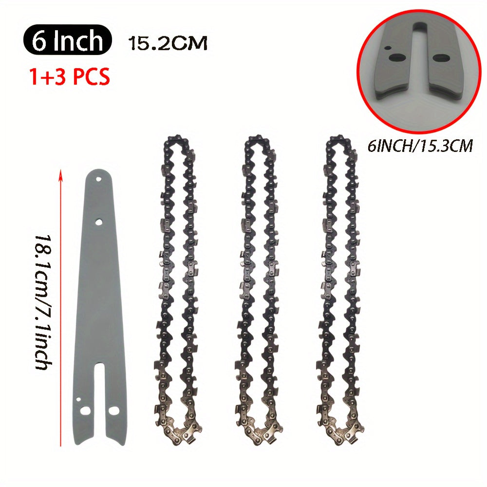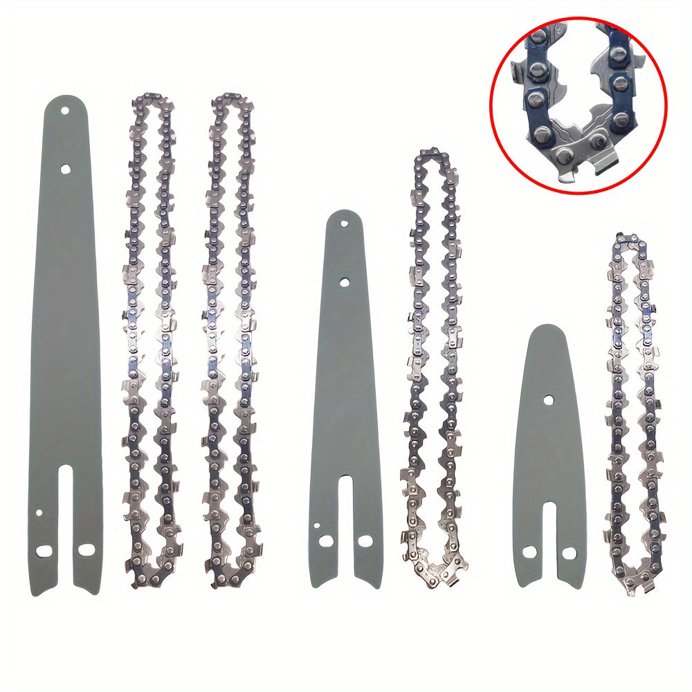 Mini elektr zanjirli arra uchun zanjirli bar to'plami, yog'och kesish uchun. 4/6/8 dyuym zanjirlar va 1/4''P zanjirni o'z ichiga oladi.