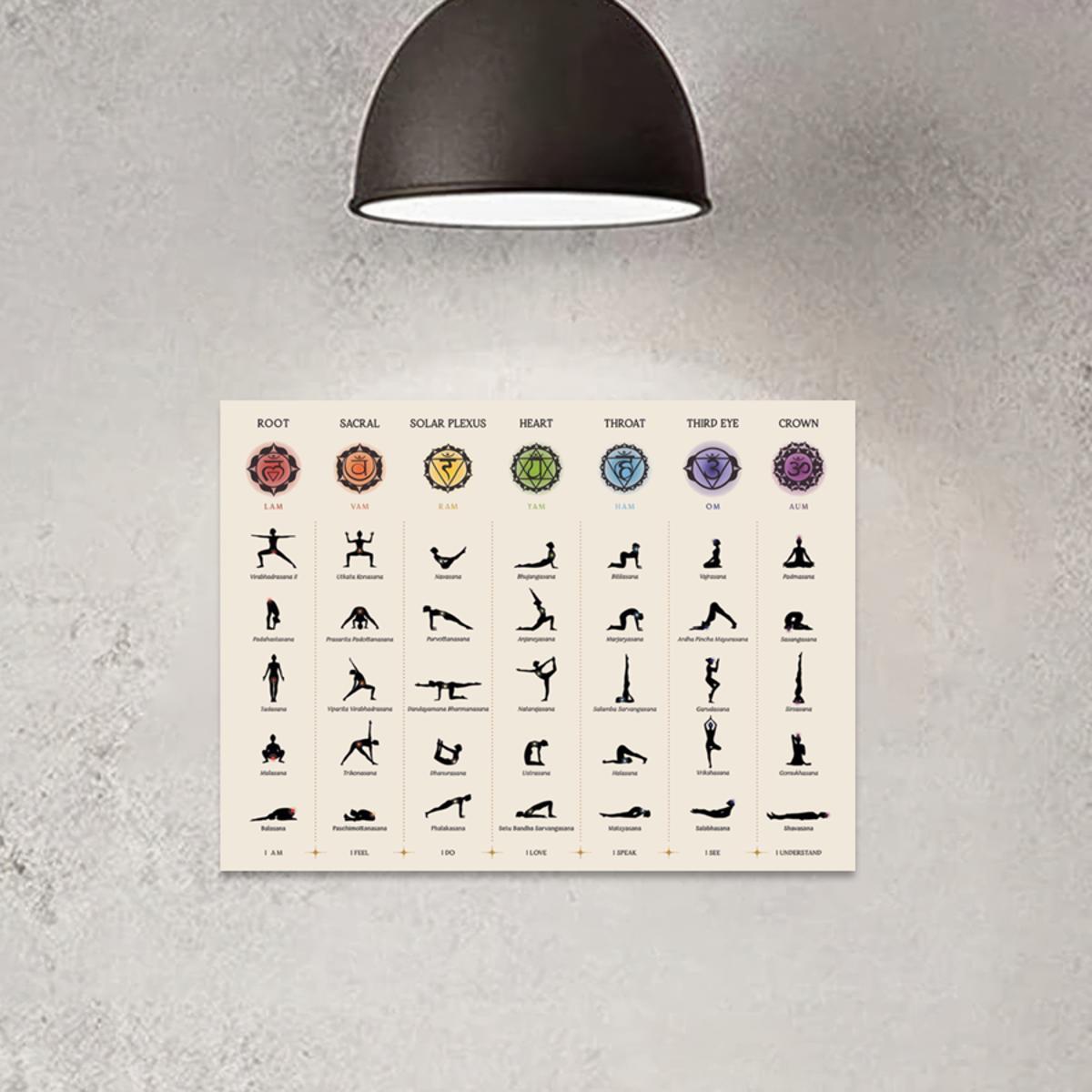 Chakra Yoga pozlari kanvas devor san'ati 7 Chakralar xaritasi Retro zamonaviy interyer uchun uy ofis yotoqxona oshxona
