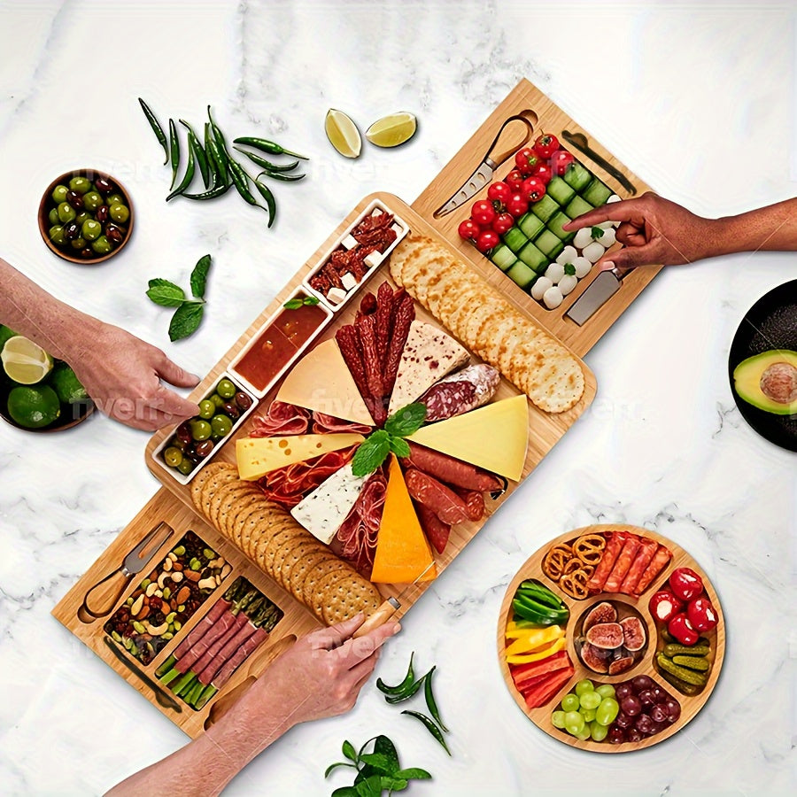 "Suyuq go'sht taxtasi to'plami, pishloq taxtasi va pichoq bilan, pishloq va go'sht uchun katta bambuk plitka - ayollar, juftliklar uchun mukammal sovg'a, to'y yilligi yoki uyga ko'chish uchun"
