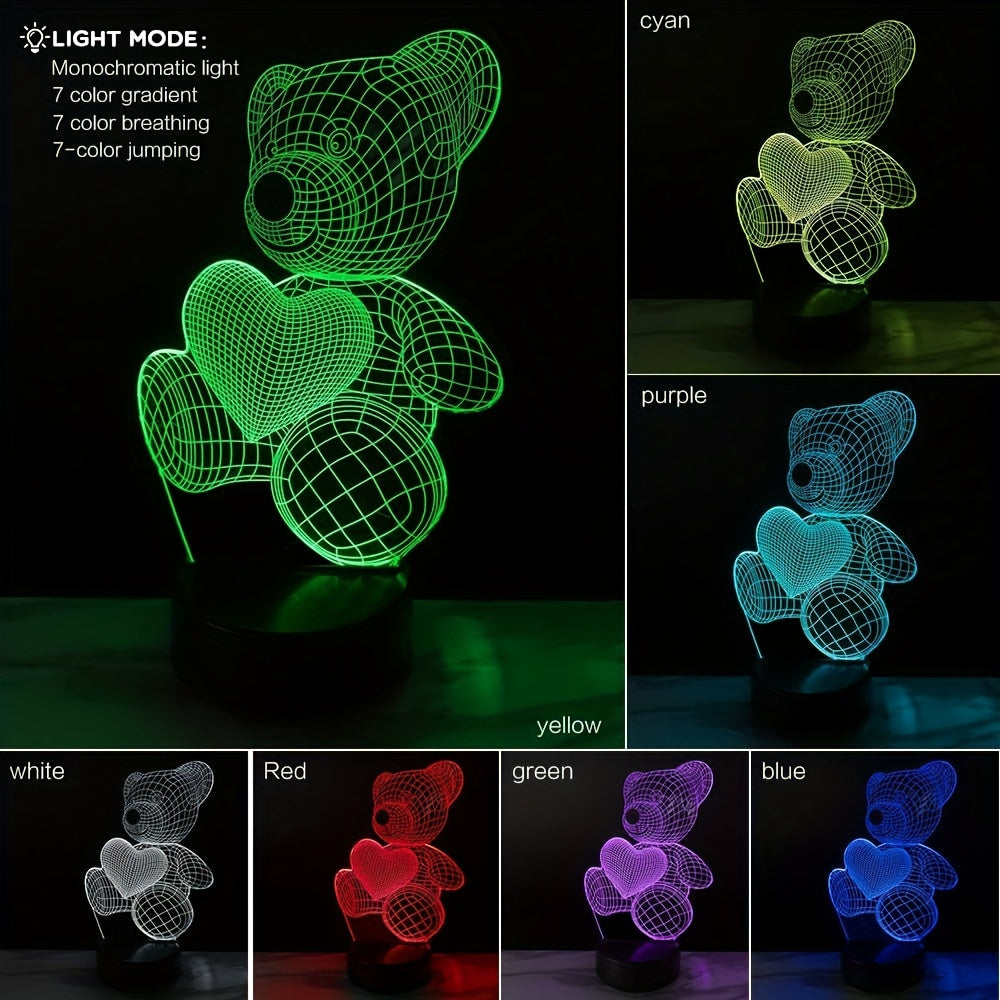 Yoqimli ayiq va yurak LED kechqurun chiroqi 3D akril stol lampasi yotoq xonasi dekoratsiyasi uchun