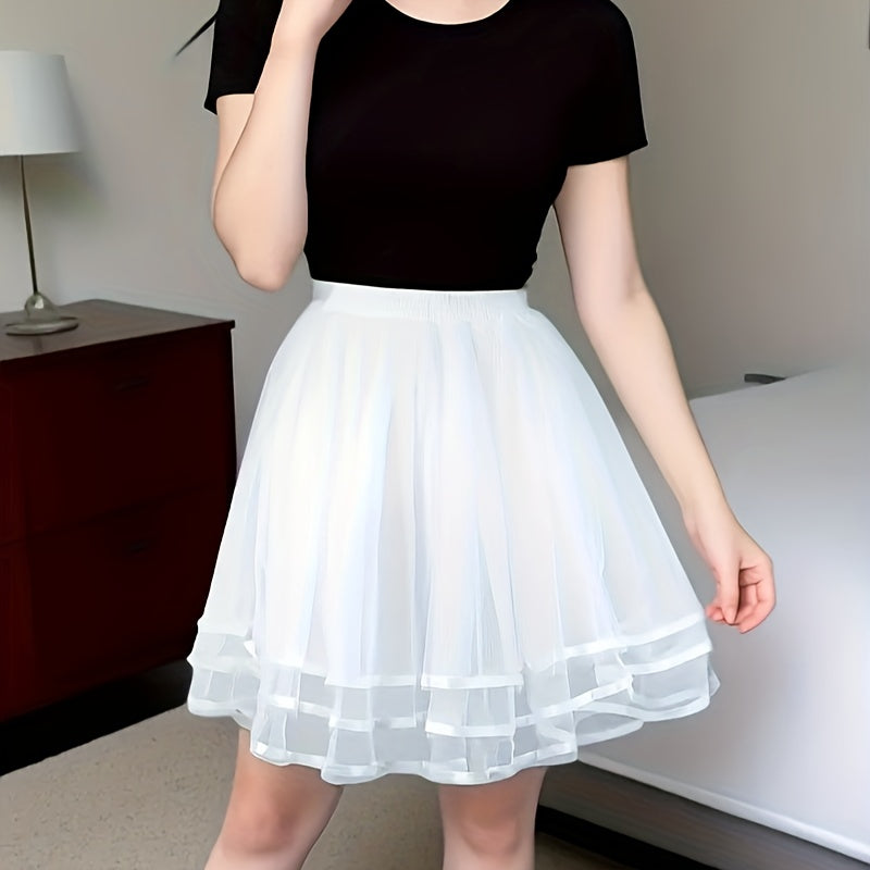 Ayollar uchun Tulle yubkasi, 3-qavatli ruffle, bir rangli, to'ylar va kundalik kiyimlar uchun