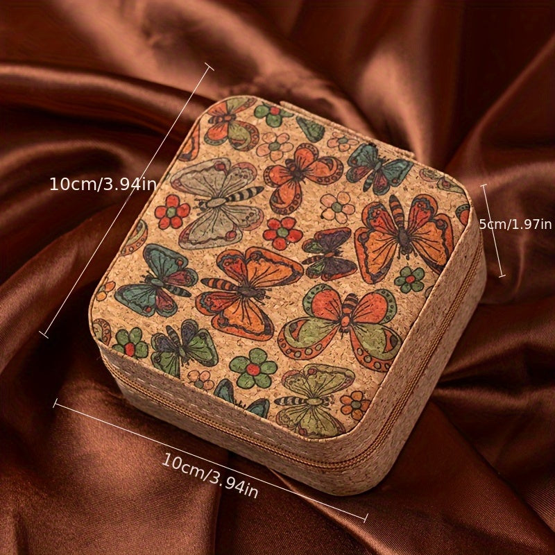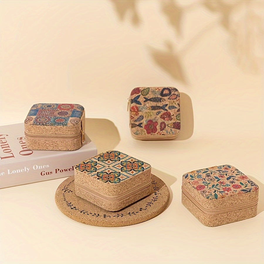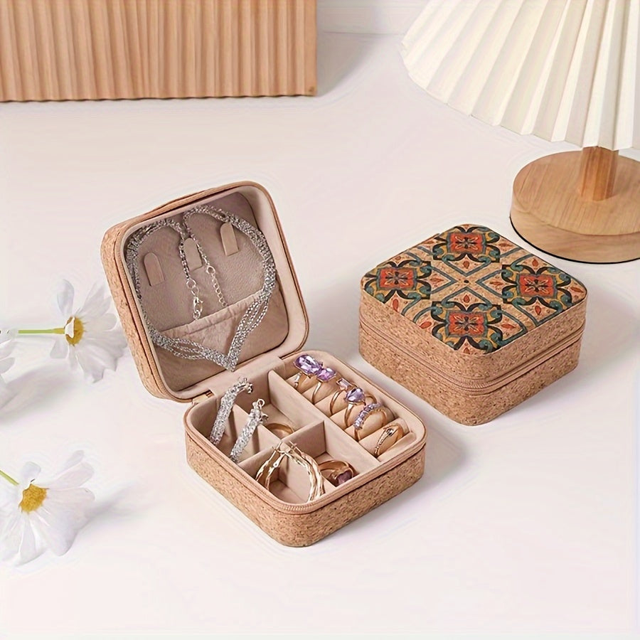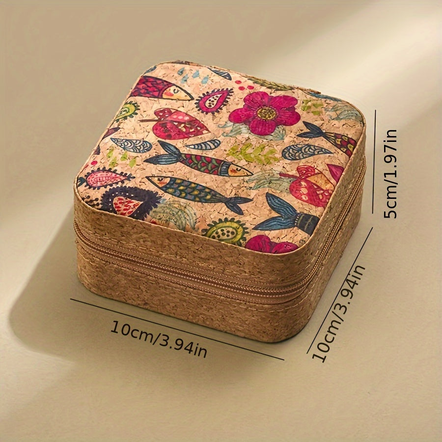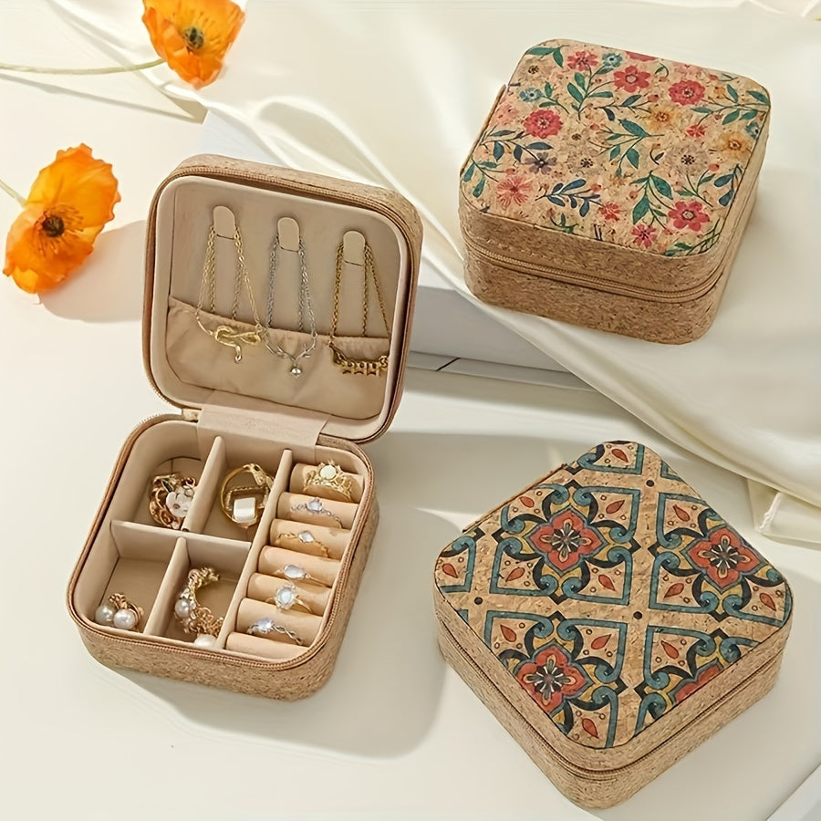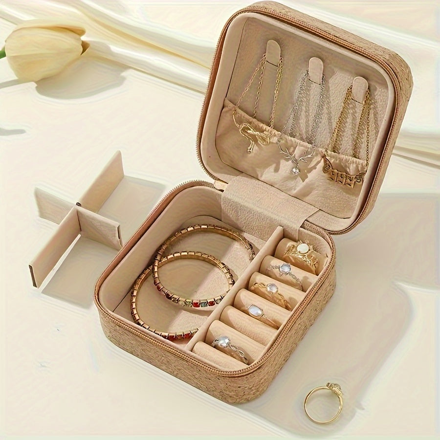 Gulzorli mini zargarlik qutisi, soxta charm bilan sayohat qutisi, uzuklar, soatlar, aksessuarlar uchun