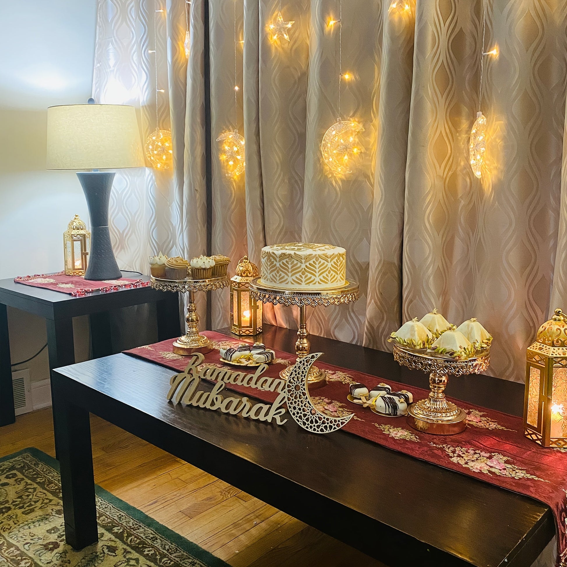 Ramazon Muborak uchun Chic Yog'och Stol Turg'ichi - Bohemia Oltin Yarim Oy va Yulduzlar Dizayni, Eid Al-Fitr Bezash va Sovg'alar uchun Ideal, Batareyalar Kerak emas