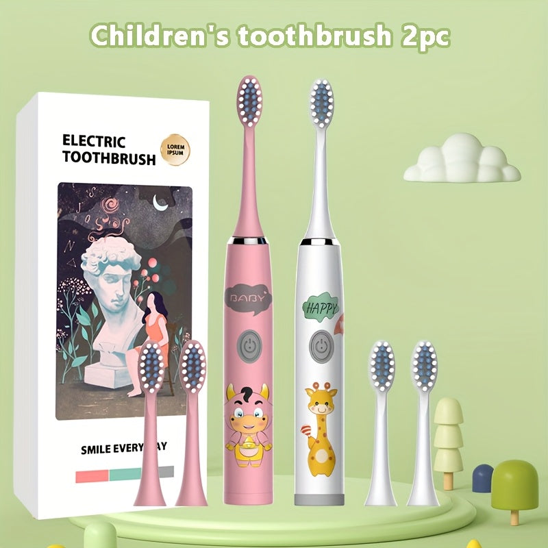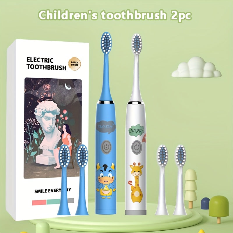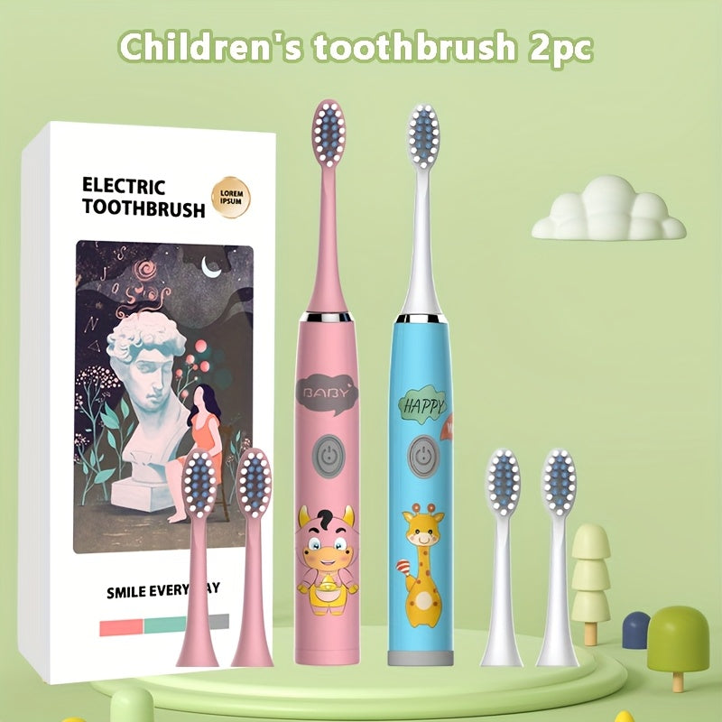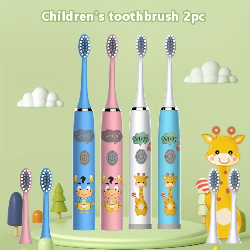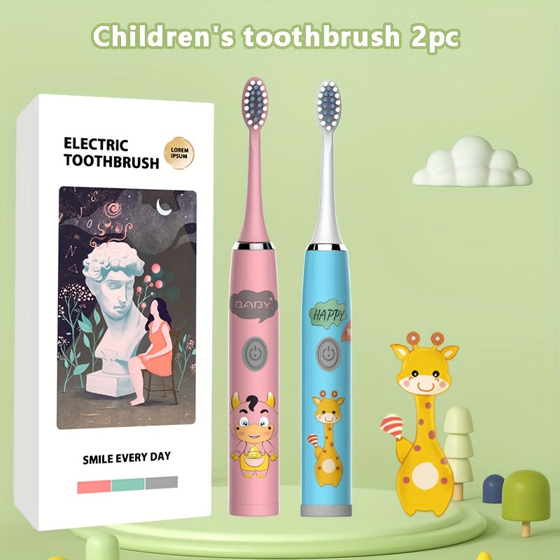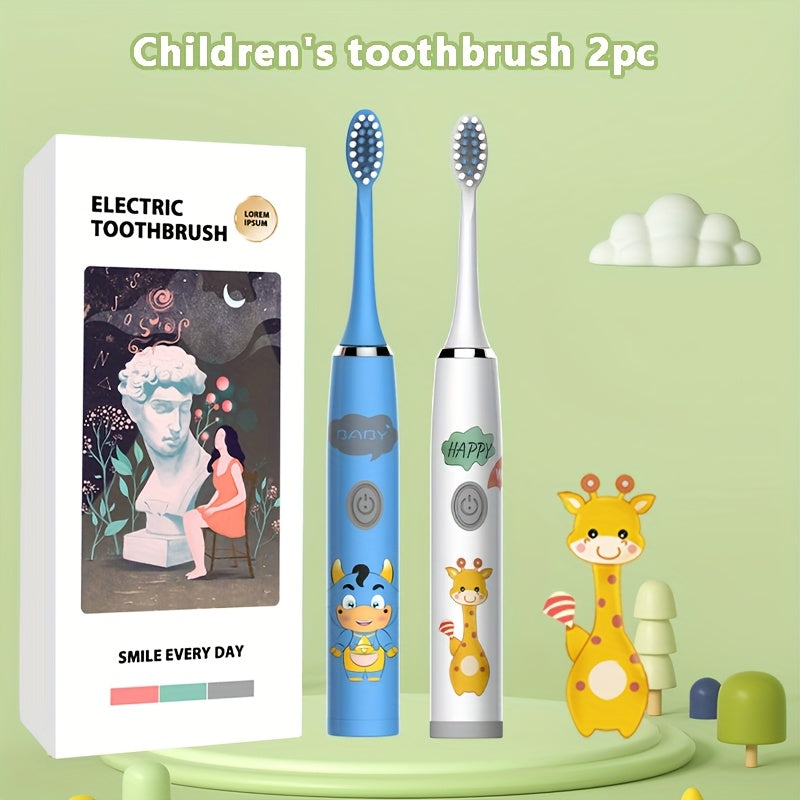 Bolalar multfilmi kiyimidagi kiyik chaqaloq uslubidagi elektr tish cho'tkasi 2 dona IPX7 uzoq batareya