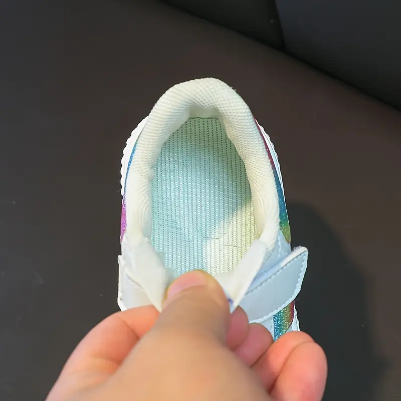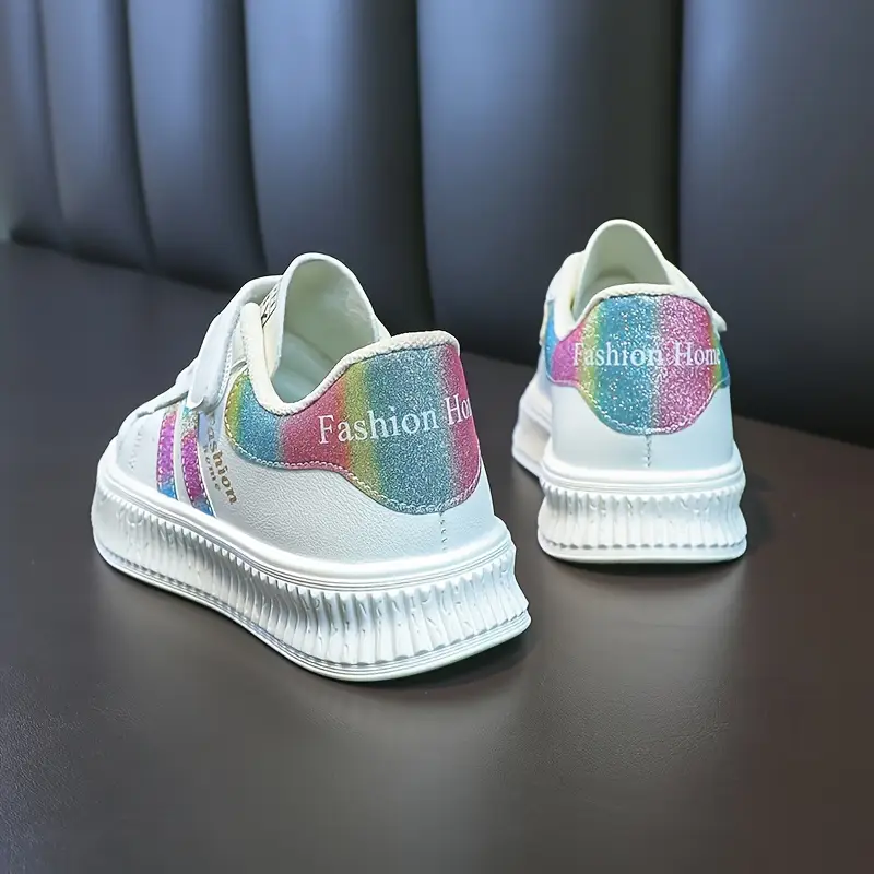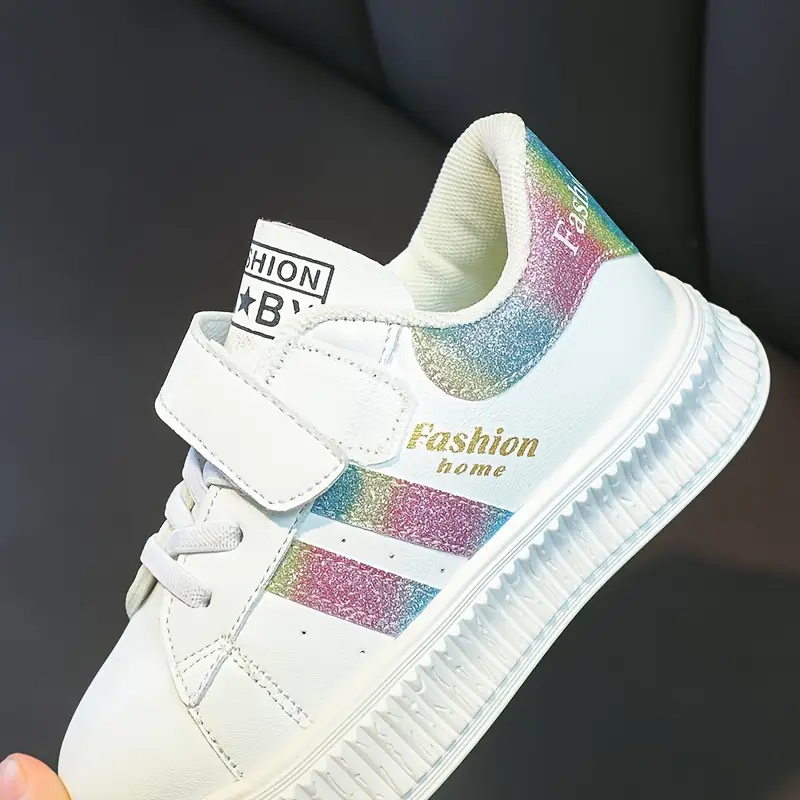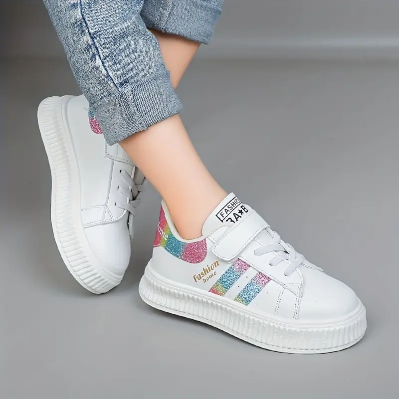 Bolalar uchun pastki casual krossovkalar, chiziqli dizayn, yopishqoq va halqa fasteneri, PU yuqori qismi, kauchuk taglik, mato astar, mato ichki taglik, qo'lda yuvish mumkin, uniseks sport skeytbord poyabzallari.
