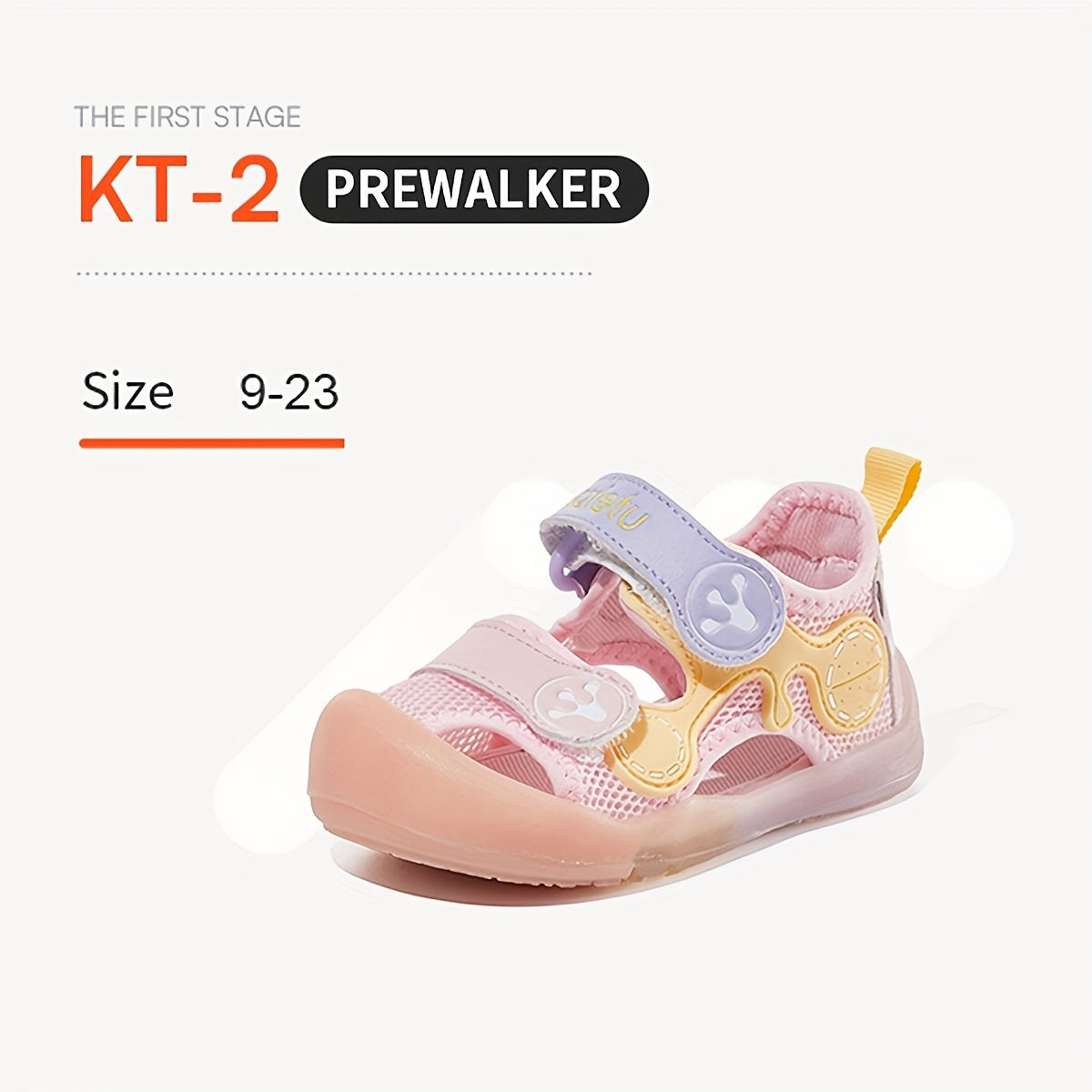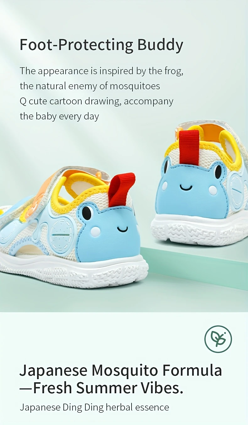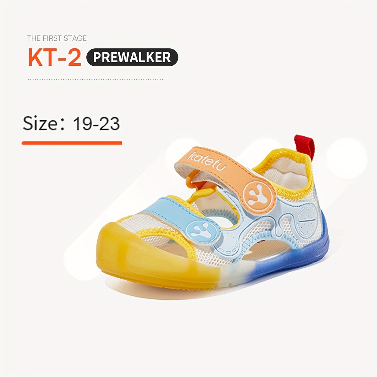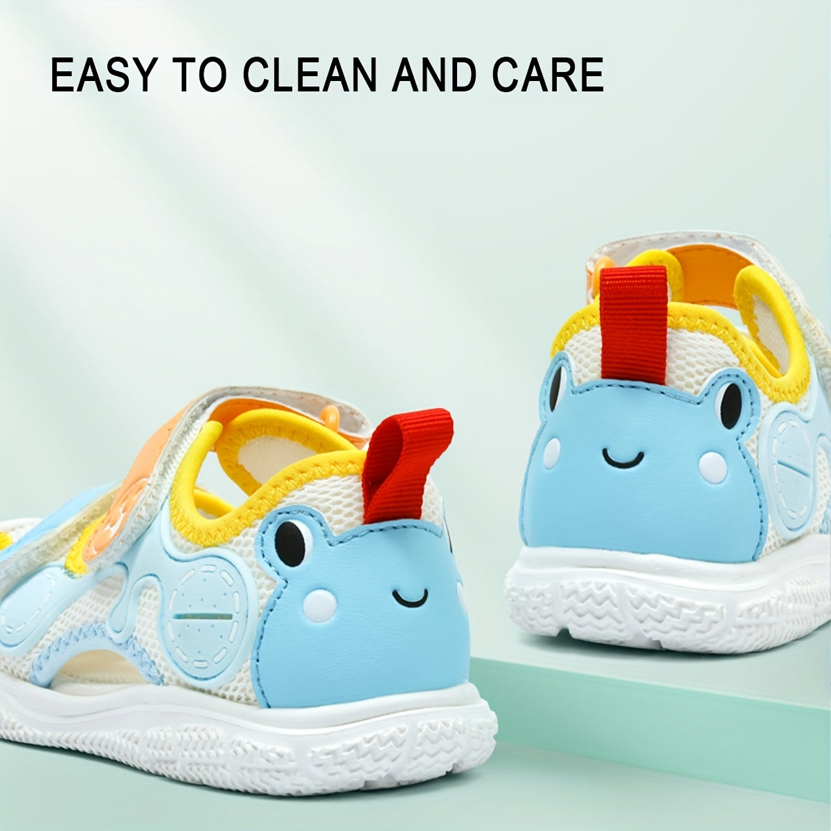 Bolalar uchun yengil, sirpanmaydigan taglikka ega va ichki va tashqi o'yinlar uchun nafas oladigan to'r dizayni bilan mo'ylovga qarshi sandallar.