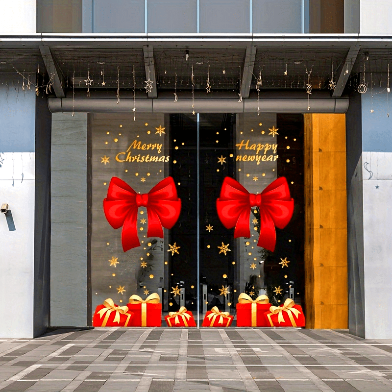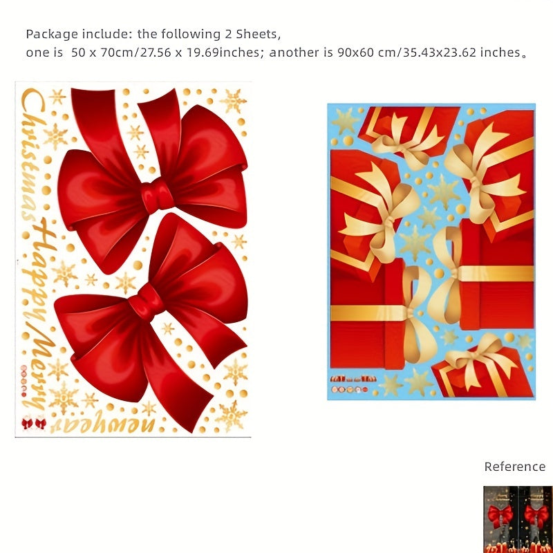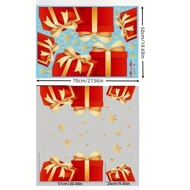 Rojdestvo uchun ikki tomonlama deraza yopishqoq tasvirlar, bayramona tuyg'u beruvchi yoqimli bezak kamarlari bilan.