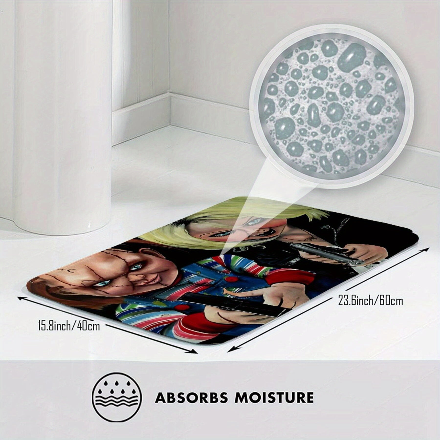 Chucky mavzusidagi polyester doormat, sirpanmaydigan ichki pol mato, 59.94x39.88cm