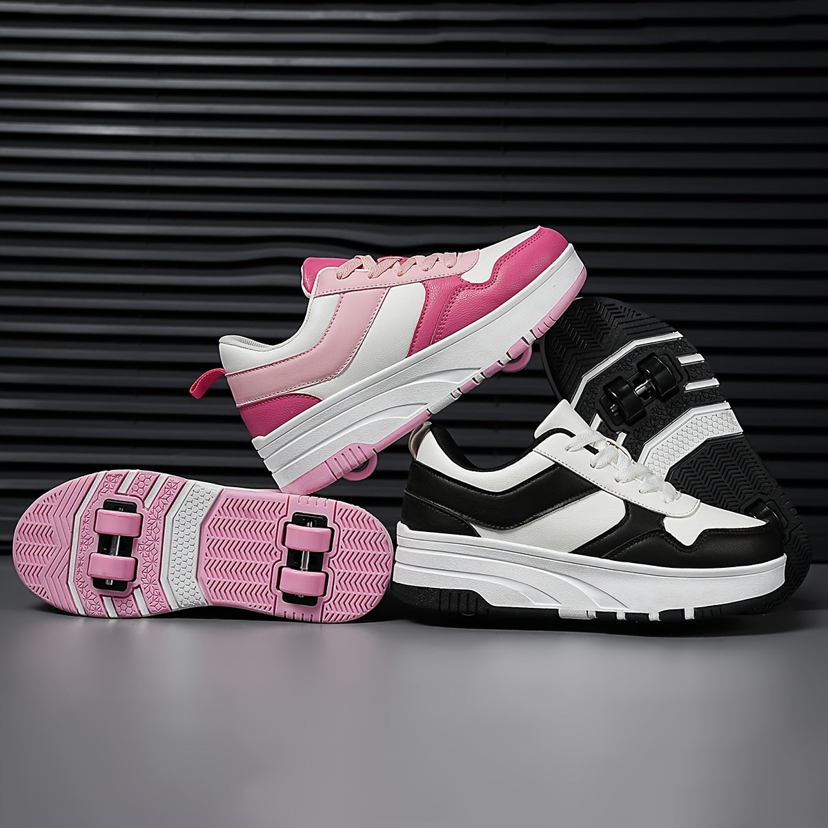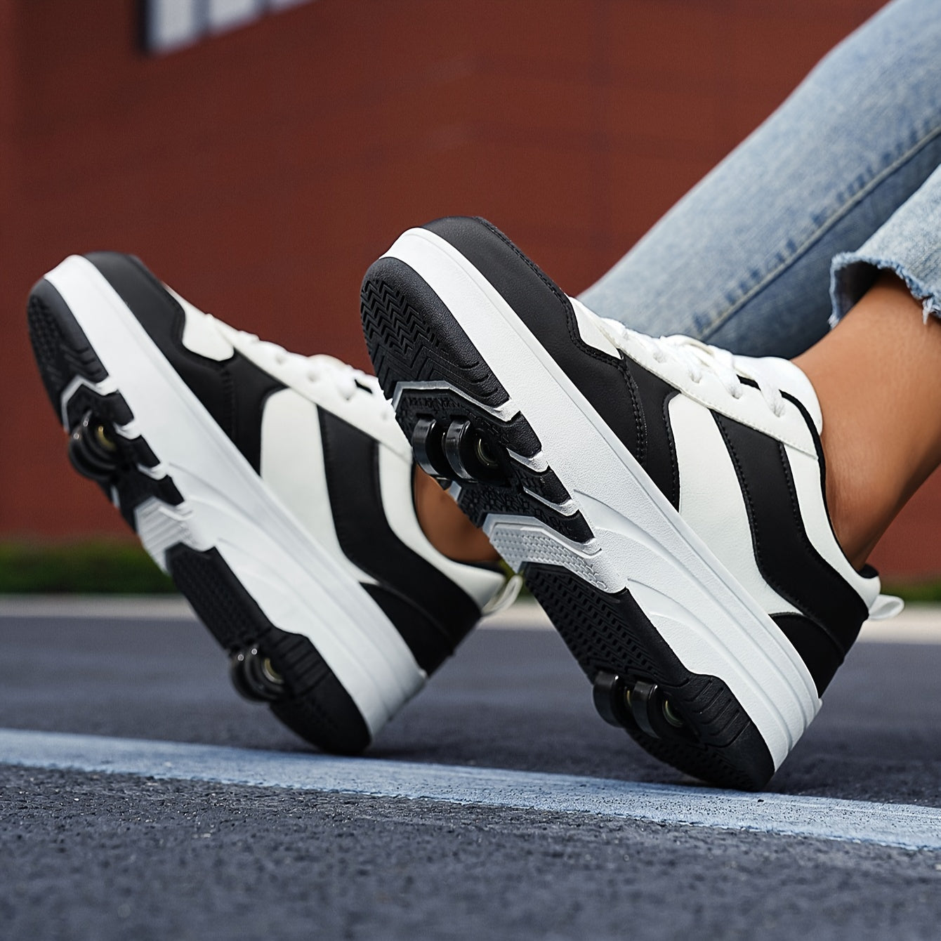 Qizlar uchun klassik qora va oq rolikli konkilar, ajratiladigan g'ildiraklar va nafas oladigan dizayn bilan. Tashqi faoliyatlar va skeytbord uchun mos, yuqori ko'cha uslubi bilan. Shuningdek, quyidagilar sifatida ham kiyilishi mumkin.