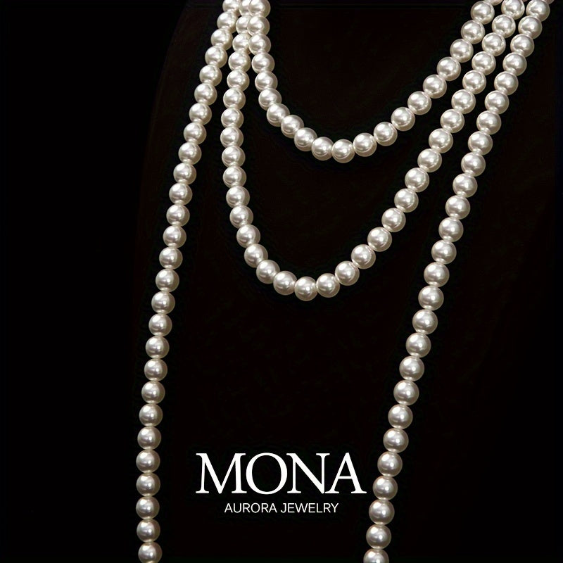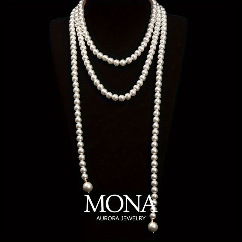 Klassik fransuz uslubidagi shell pearl marjon, har kuni yoki maxsus tadbirlar uchun mukammal, zamonaviy va nafis hashamatli zargarlik buyumi, ko'p maqsadli uzun zanjir bilan.