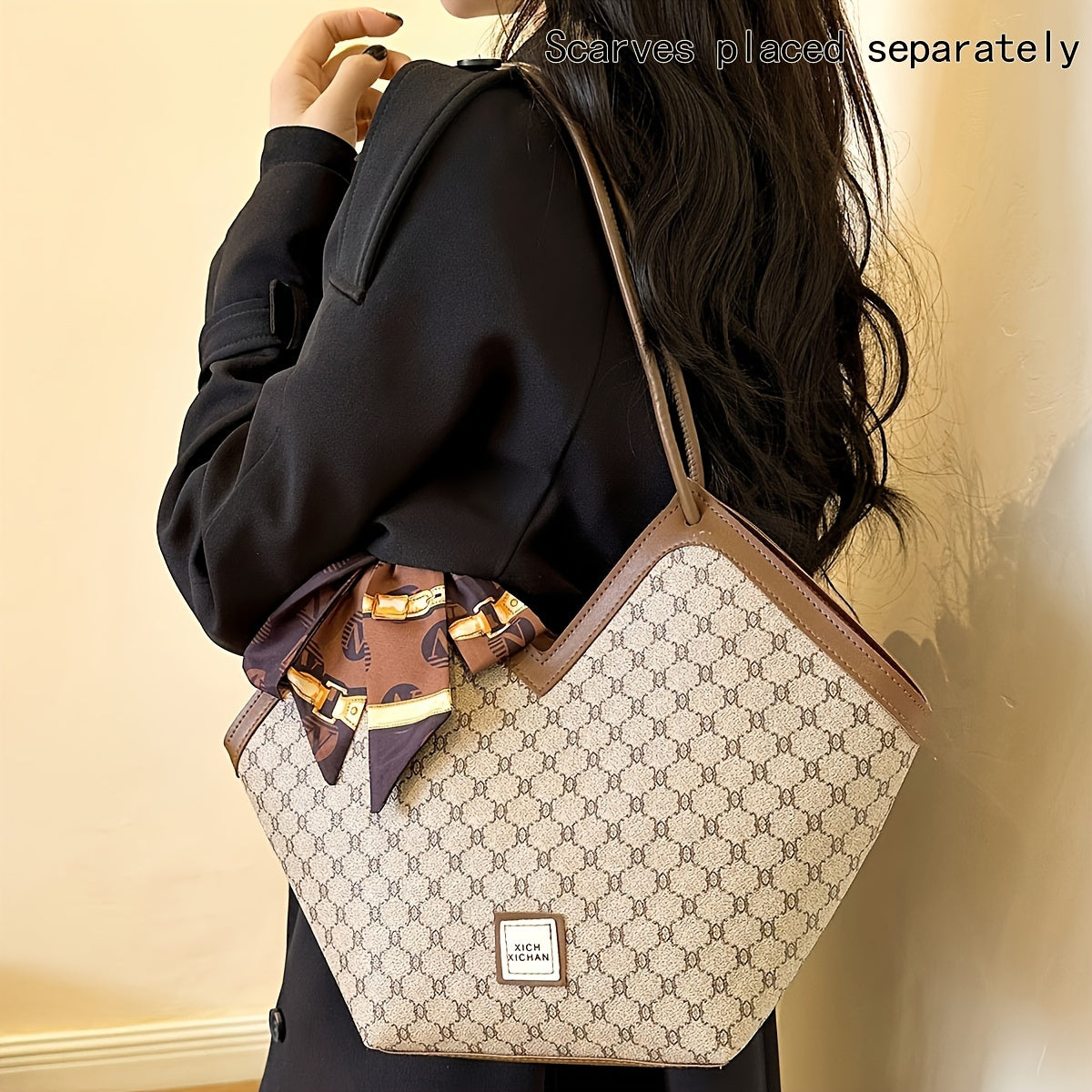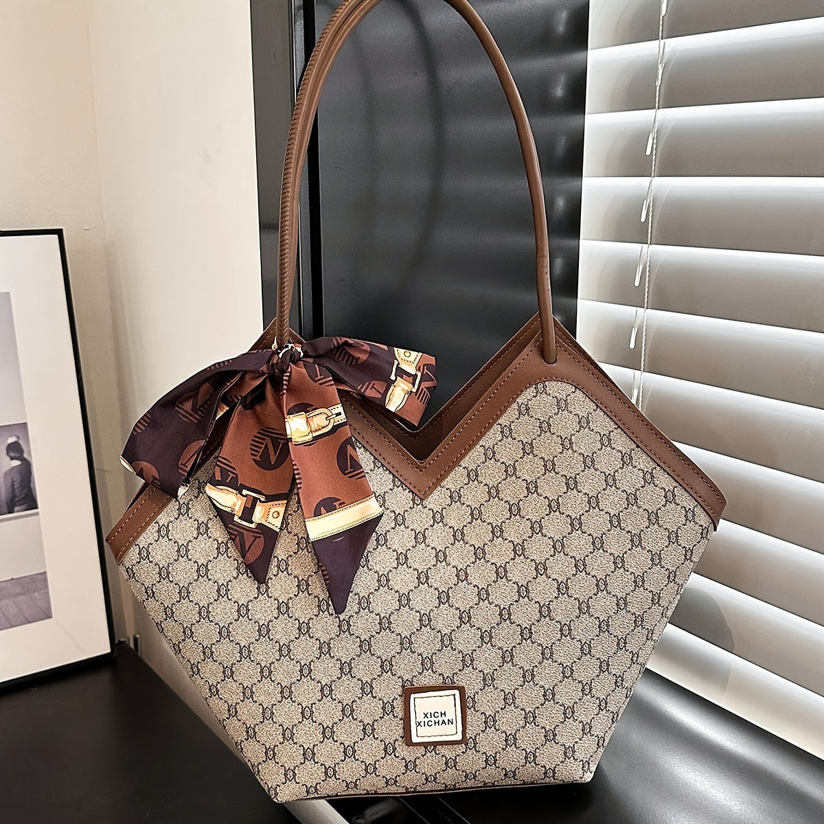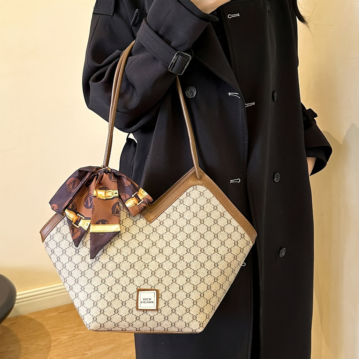 Ayollar uchun sharf bezakli va nafis dizaynga ega bo'lgan klassik nişli naqshli sumka.