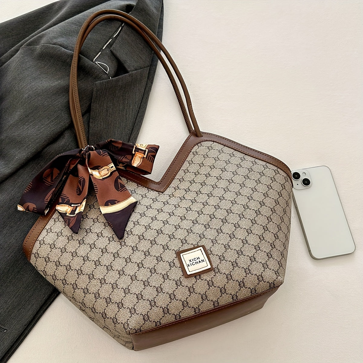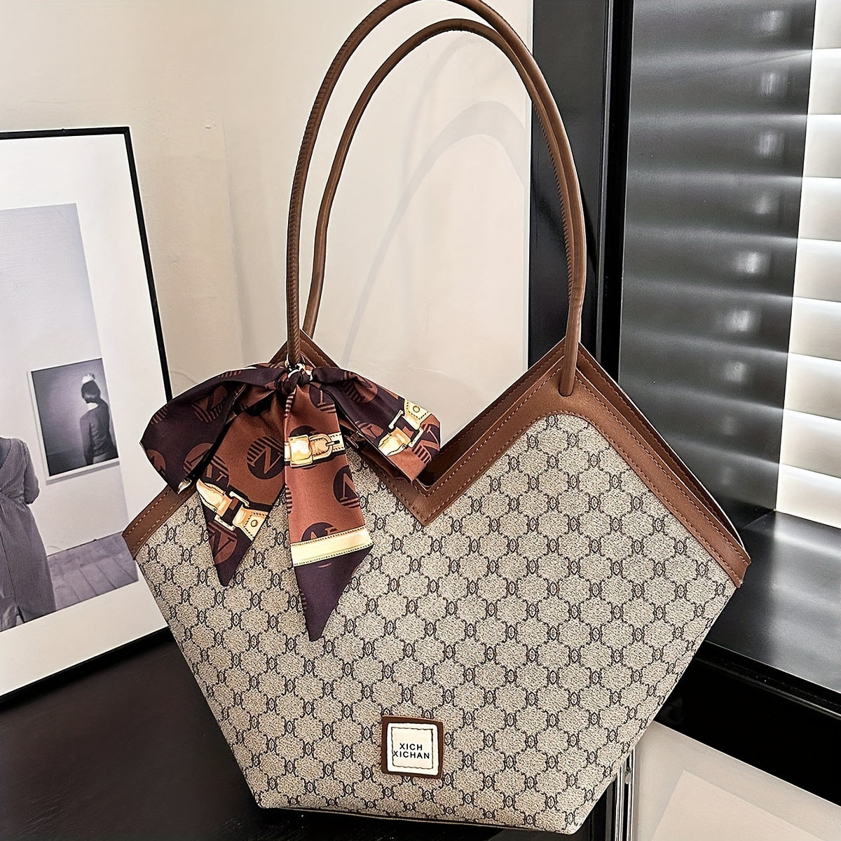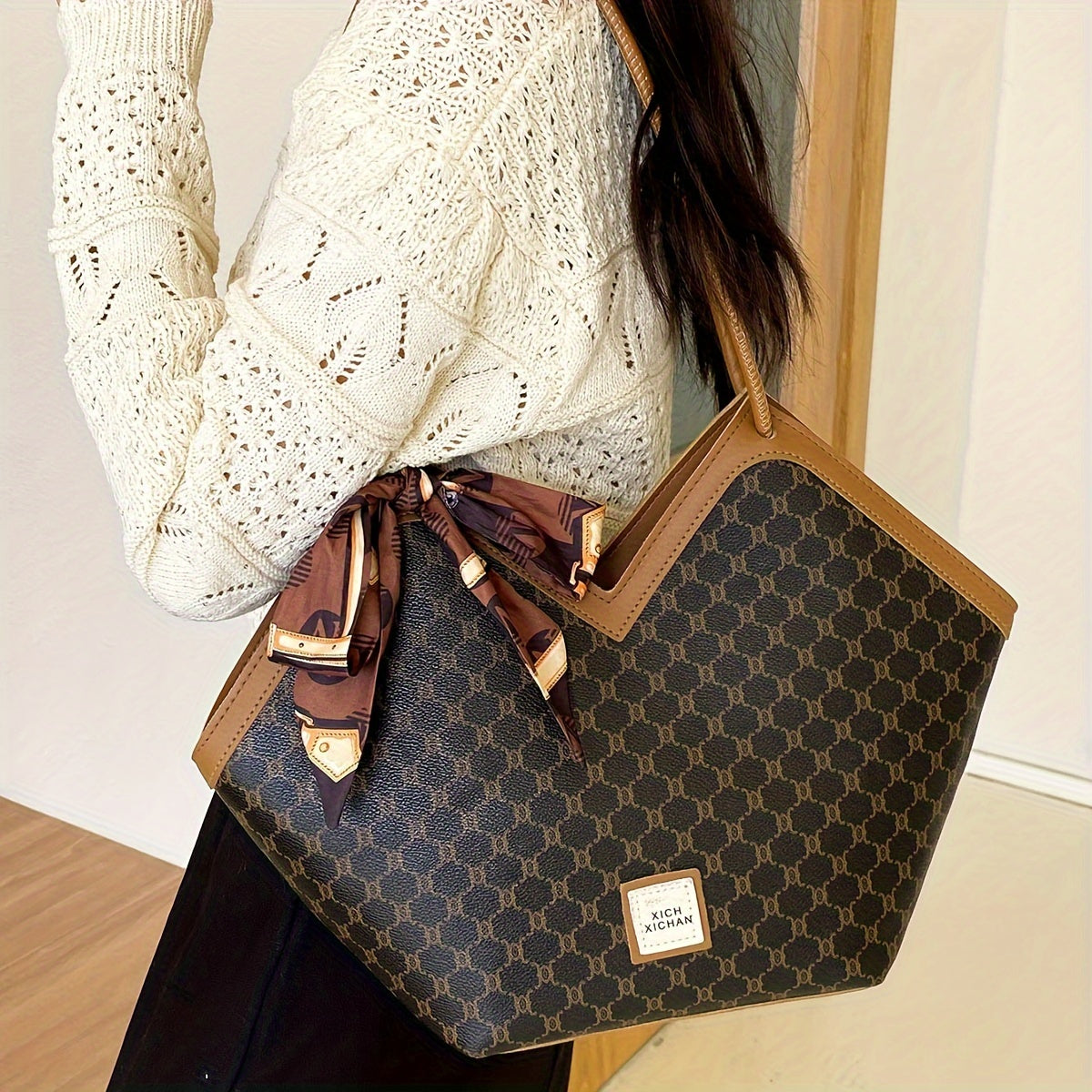 Ayollar uchun sharf bezakli va nafis dizaynga ega bo'lgan klassik nişli naqshli sumka.