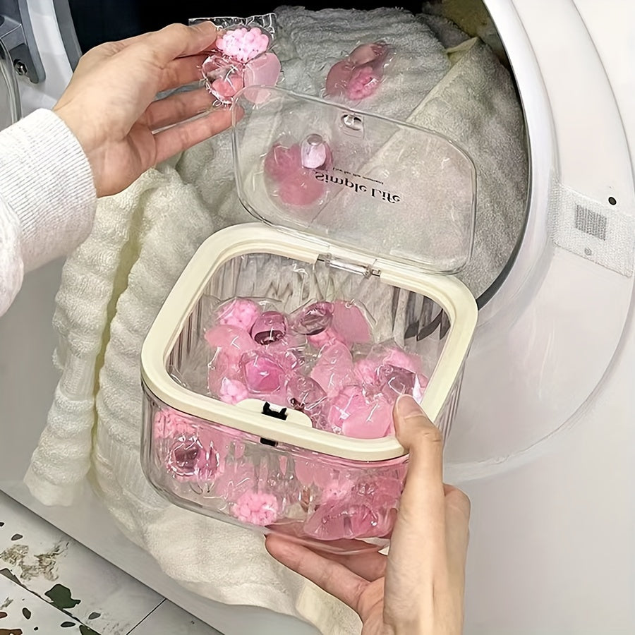 Oson kir yuvish xonasi tashkiloti uchun shaffof plastik pod ushlagich, turli xil kir yuvish kukunlari bilan mos keladi.
