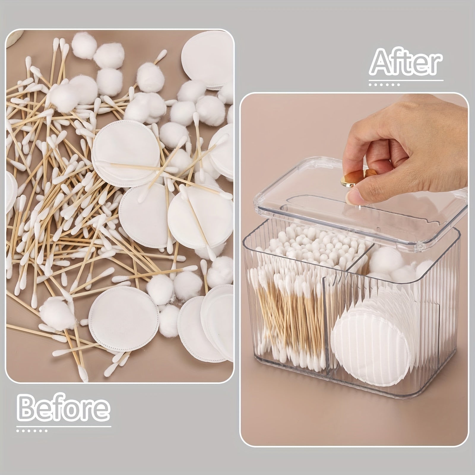 Ochiq plastmassa hammom uchun saqlash tashkilotchisi, paxta cho'tkalar, padlar va to'pchalarga mo'ljallangan, joyni tejovchi