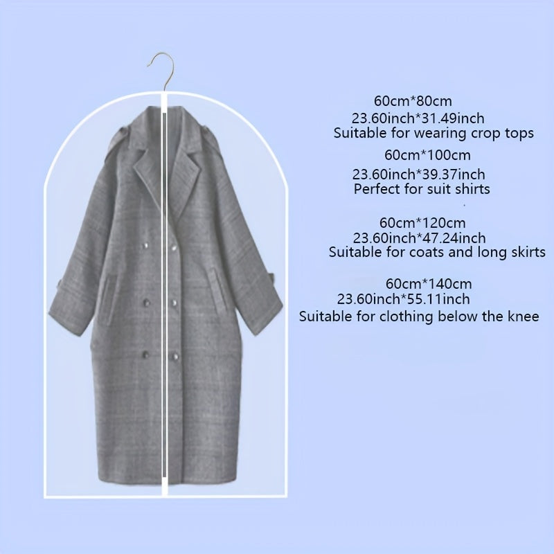 Yopiq PVC kiyim sumkalar, zip yopilishi bilan, 3/5 ta toza shaffof kostyum qoplamalari, palto va kurtkalar uchun