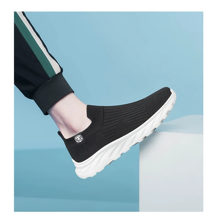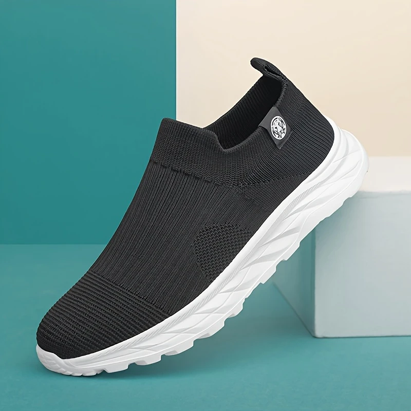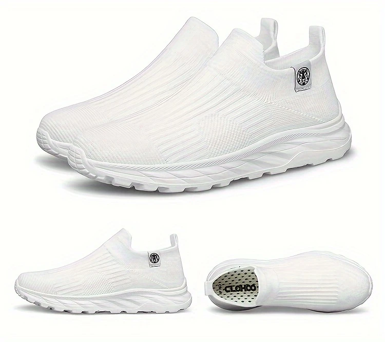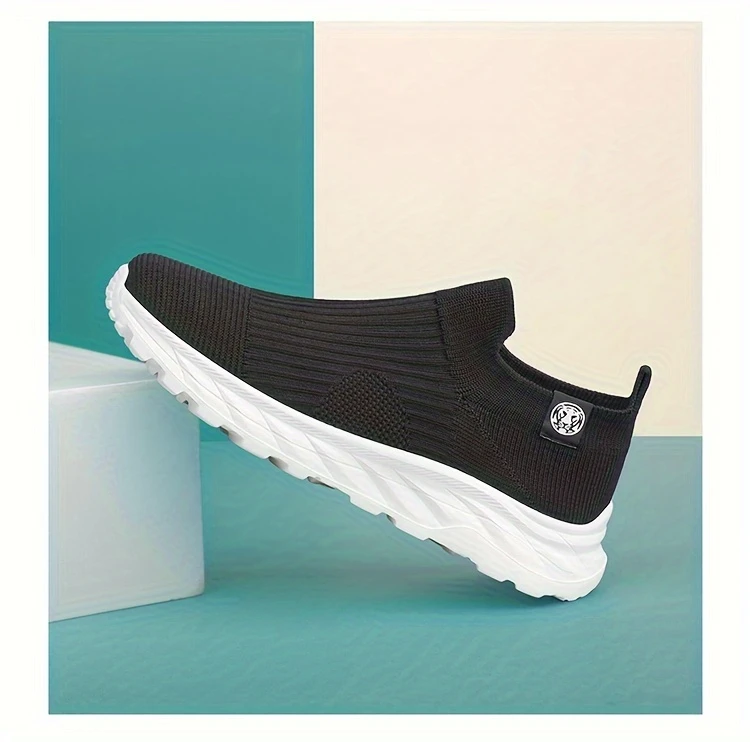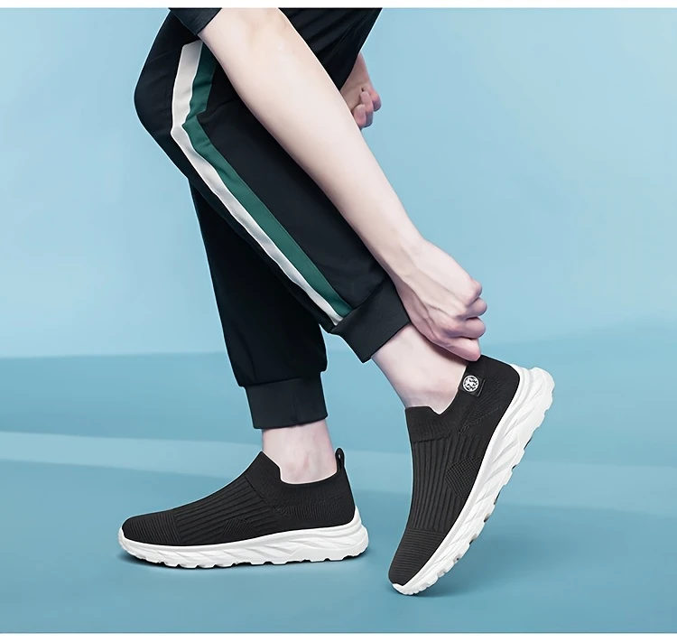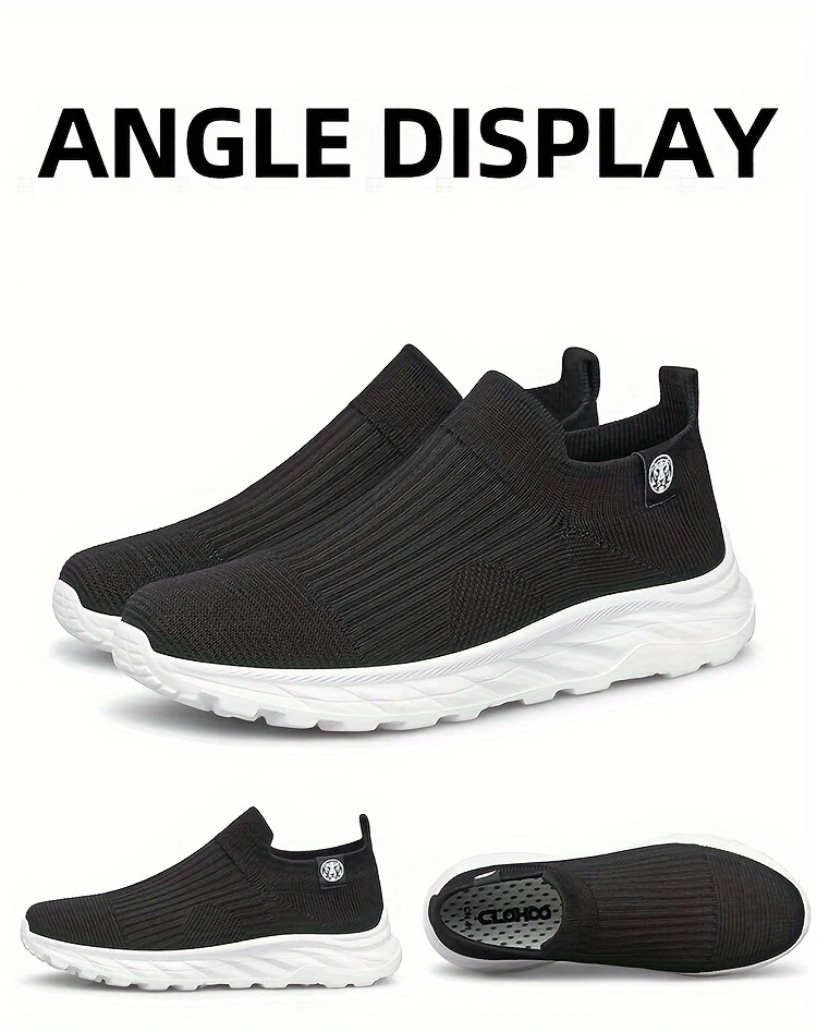 CLOHOO Erkaklar uchun Qora Rangdagi Havo O'tkazuvchi Trikotaj Slip-On Krossovkalar, Yugurish, Sayohat va Kundalik Kiym uchun. Qulay EVA Taglik. Zamonaviy va Faslga Mos Poyabzal.