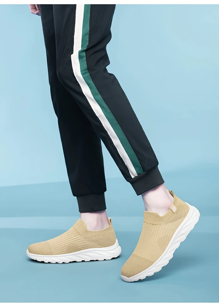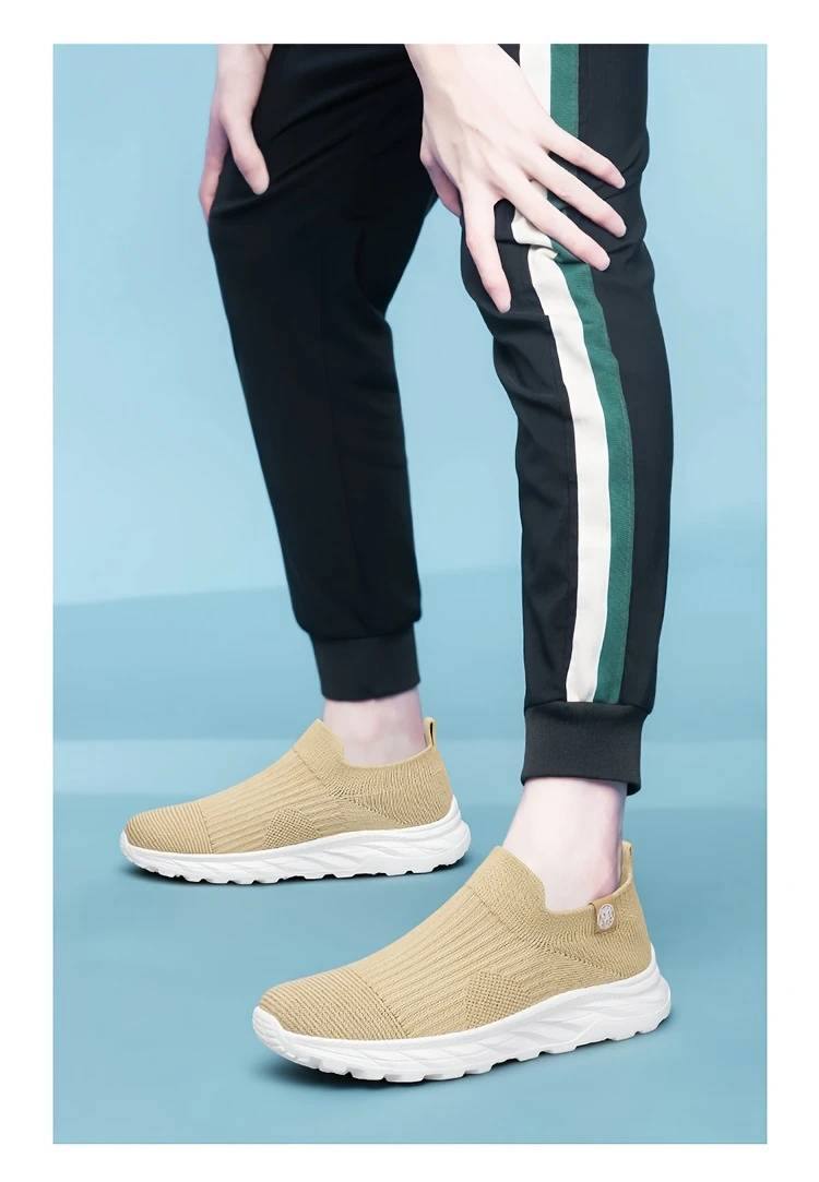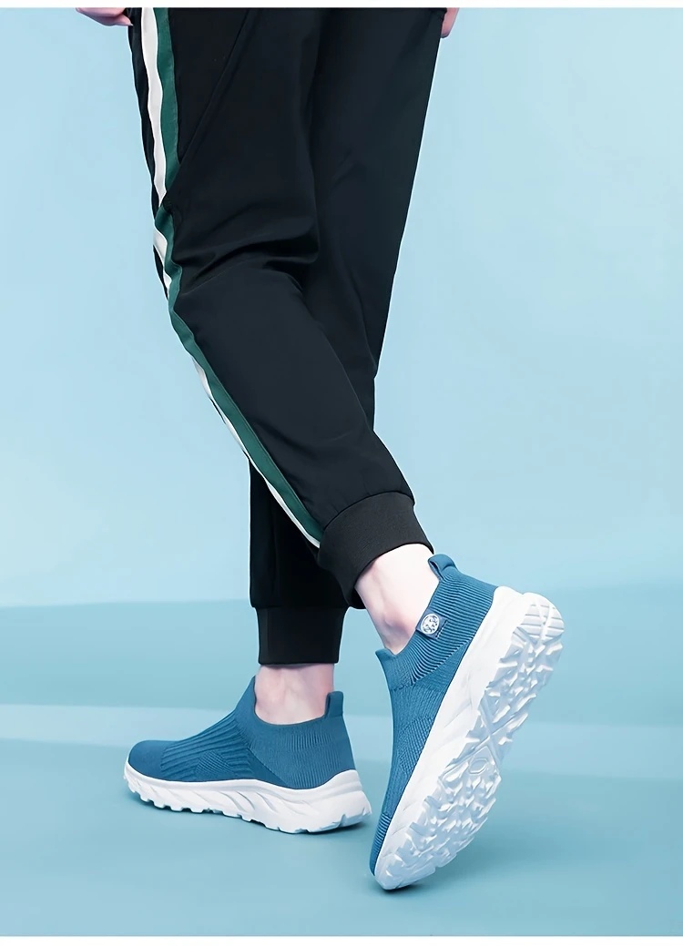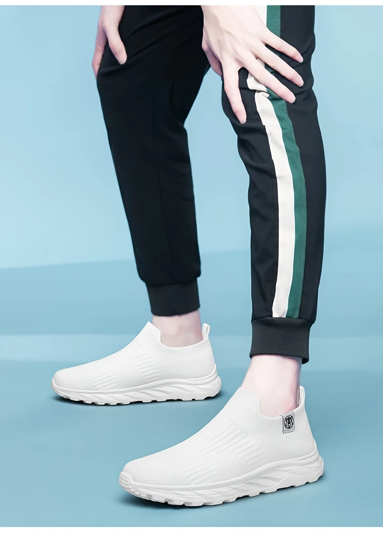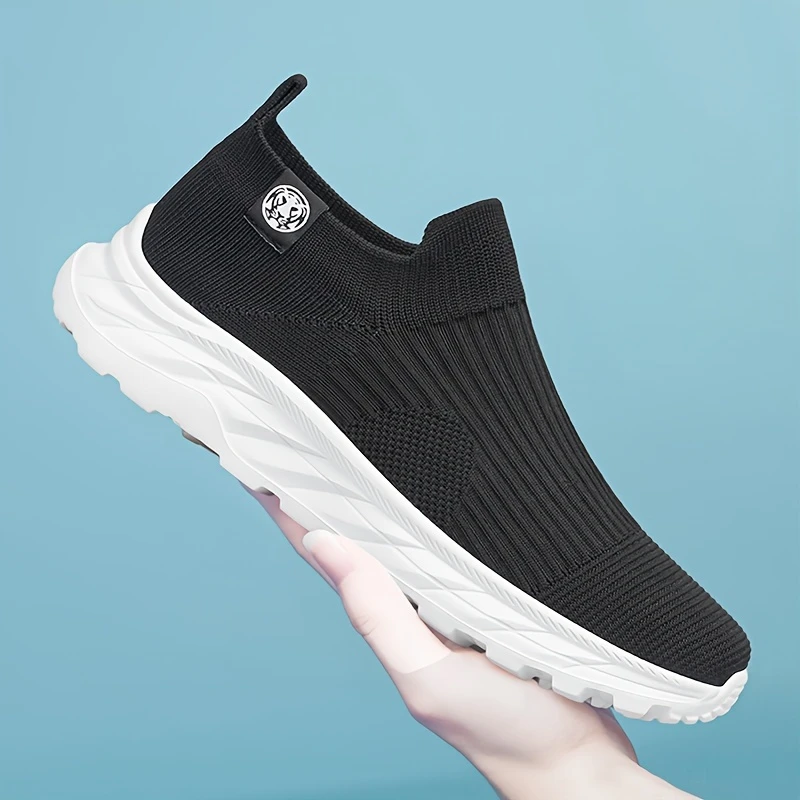 CLOHOO Erkaklar uchun Qora Rangdagi Havo O'tkazuvchi Trikotaj Slip-On Krossovkalar, Yugurish, Sayohat va Kundalik Kiym uchun. Qulay EVA Taglik. Zamonaviy va Faslga Mos Poyabzal.