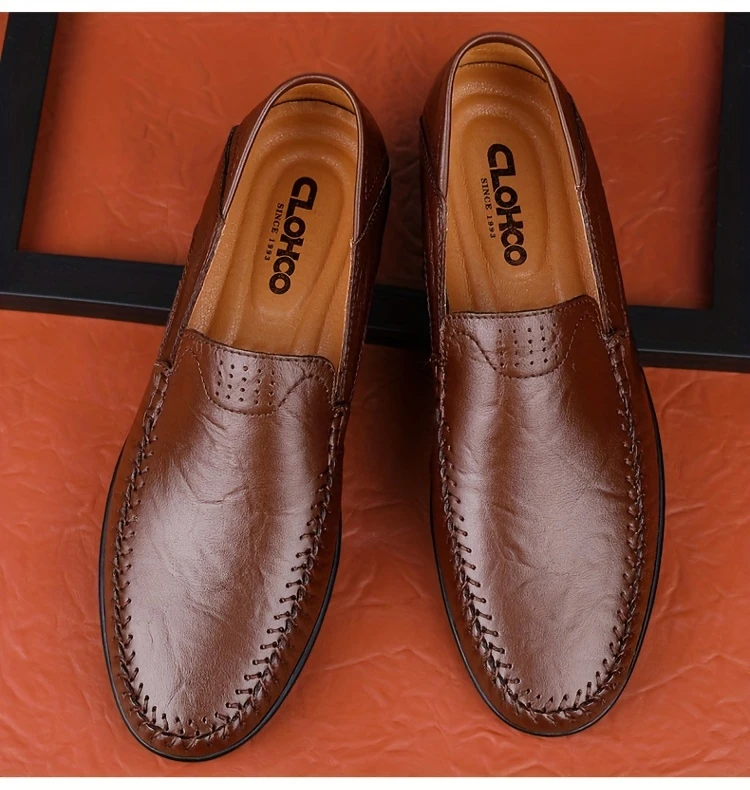CLOHOO Erkaklar uchun Tasodifiy Biznes Oksford Poyabzallari - Har kuni kiyish uchun Qayishma Charm Loferlar, Gumli Taglik va PU Ichki - Dumaloq Barmoq Qulay Poyabzal
