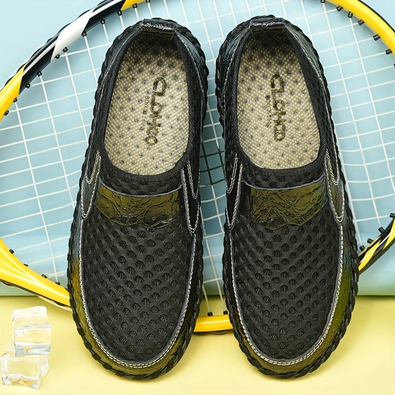 CLOHOO Erkaklar uchun qo'lda tayyorlangan, nafas oladigan, slip-on, kauchuk taglikli poyabzal, erkaklarning ochiq havoda faoliyatlari uchun.