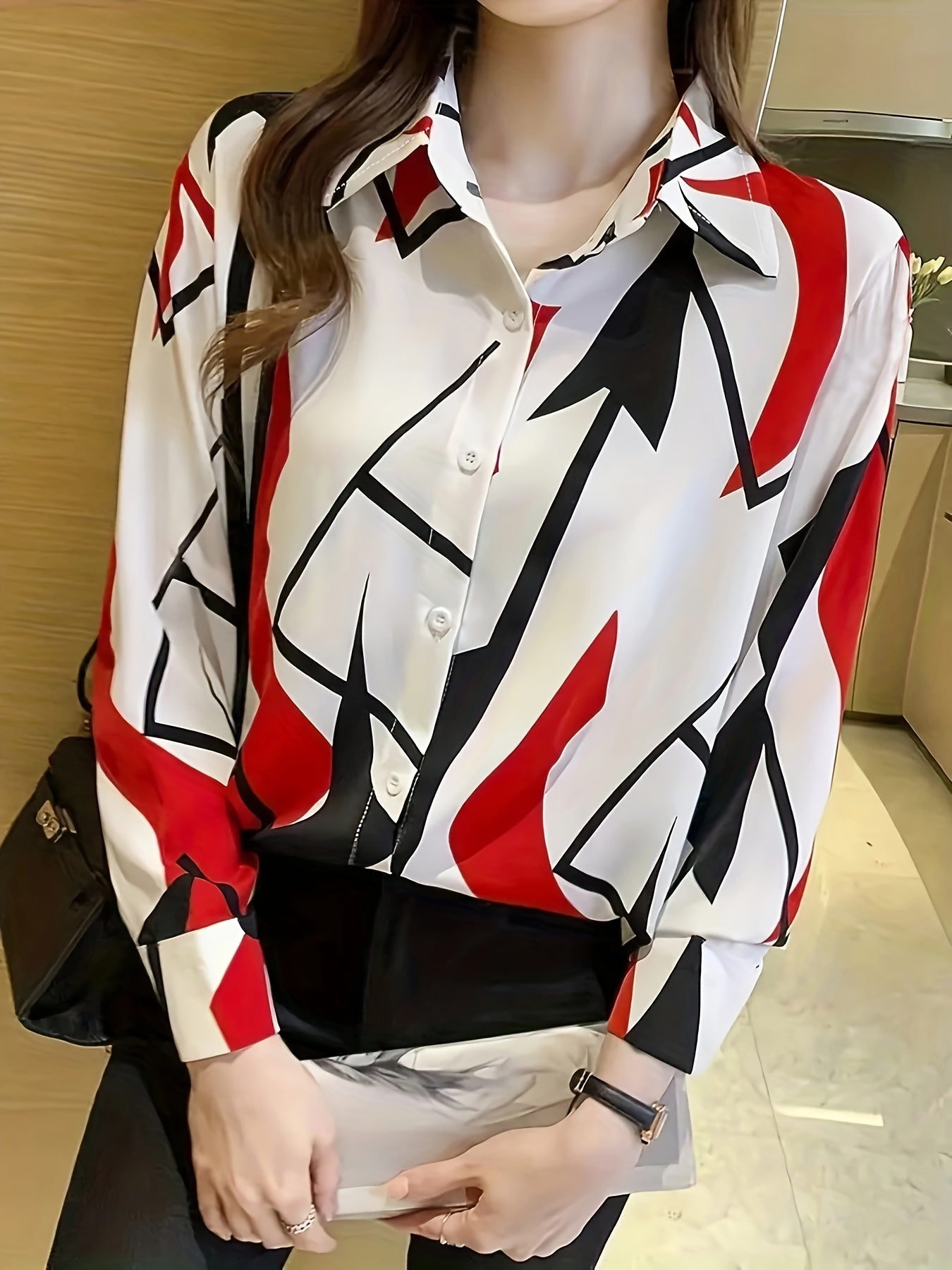 Ayollar uchun rang blokli tugma old kiyim, uzun qoʻl, lapel yelka, kundalik, bahor va kuz uchun